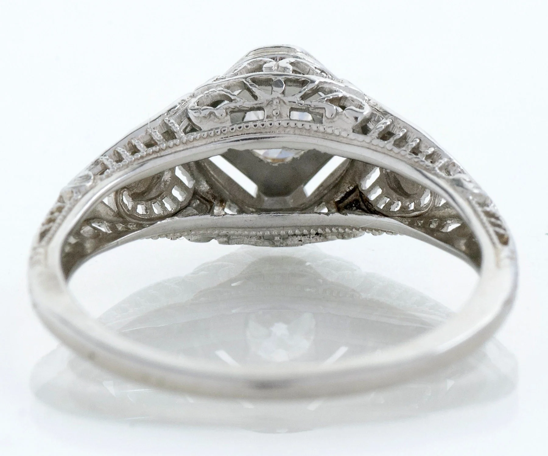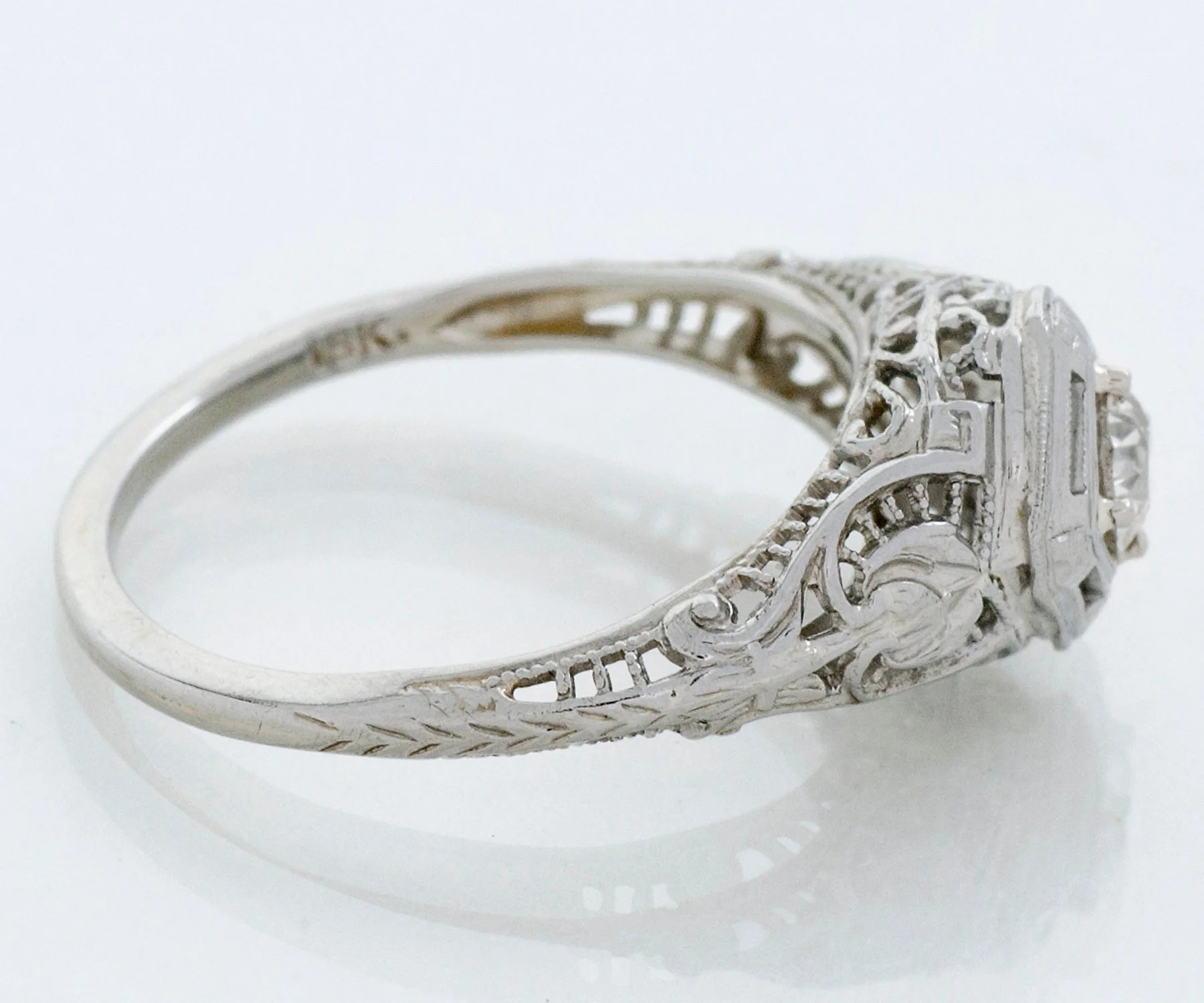Antique Engagement Ring - Antique Edwardian 18k White Gold Filigree Diamond Engagement Ring Edwardian 18k White Gold European Cut Diamond =.24ct SI2/G Ring Size 5.5 (ring is sizable) Ring measures approximately 8.2mm at center, back of band is 1.3mm wide.