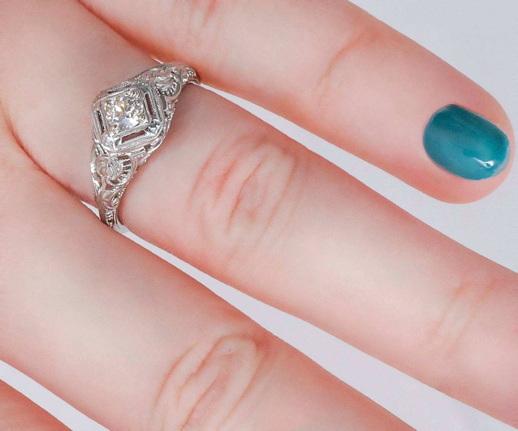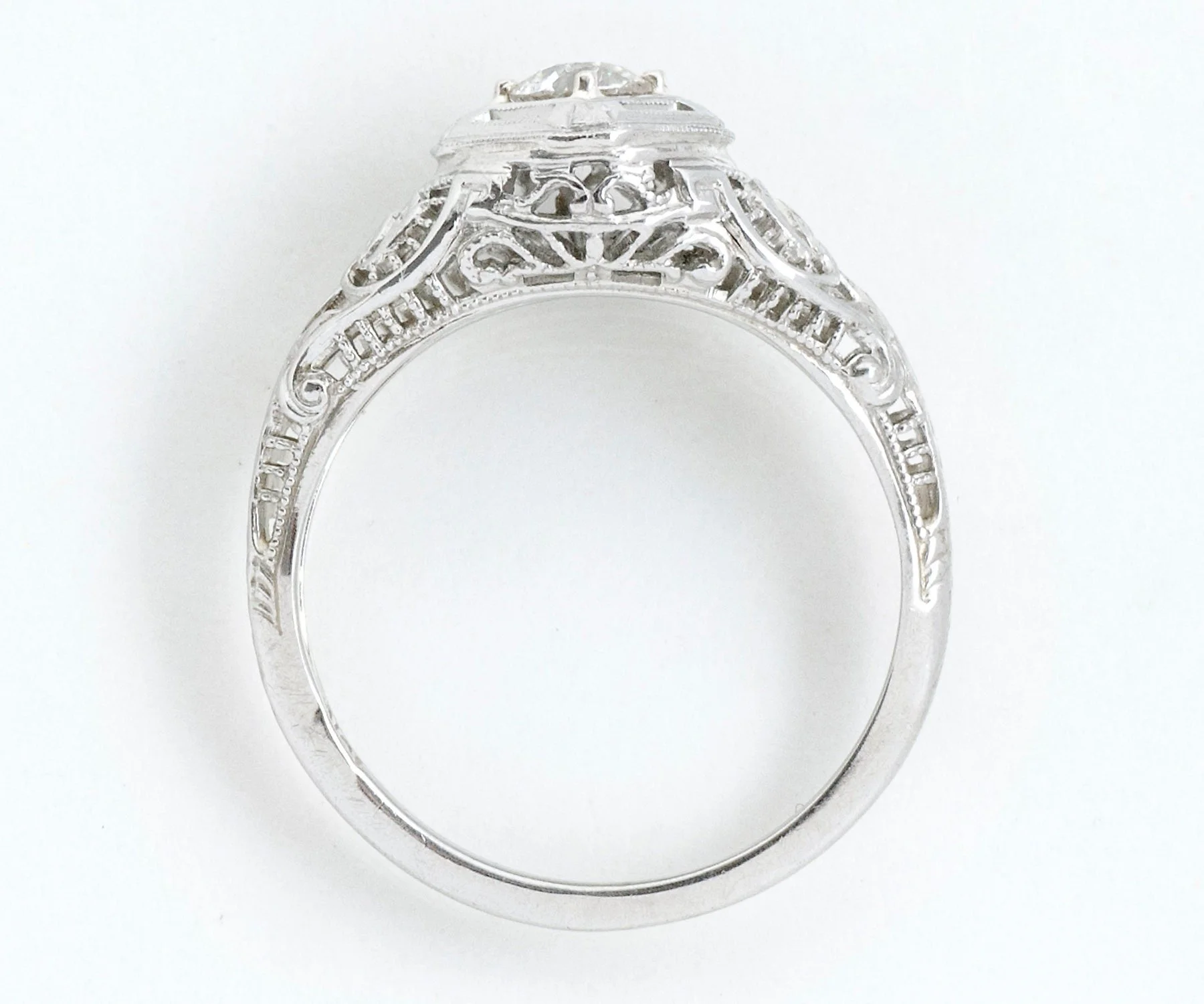 Antique Engagement Ring - Antique Edwardian 18k White Gold Filigree Diamond Engagement Ring