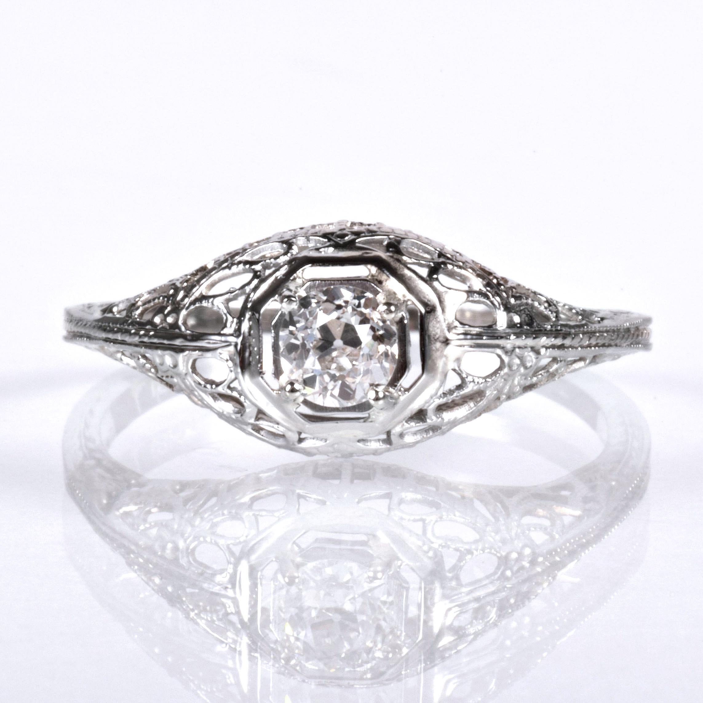 Antique Engagement Ring - Antique Edwardian 18k White Gold Filigree Engagement Ring
