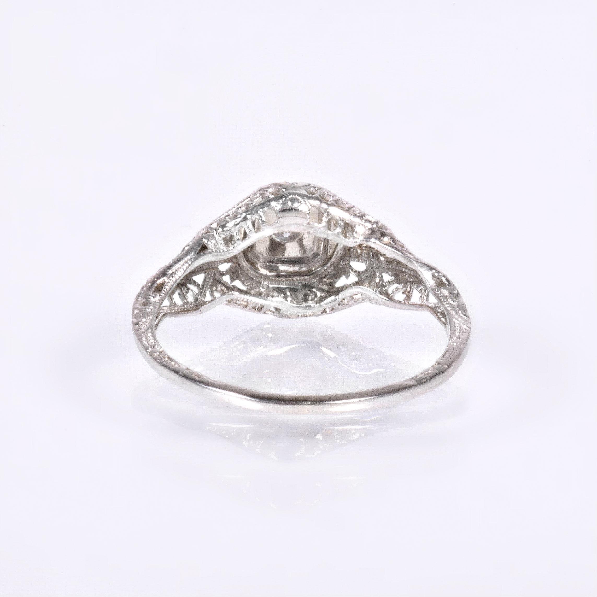 Antique Engagement Ring - Antique Edwardian 18k White Gold Filigree Promise Ring Circa 1910's 18k White Gold Single Cut Diamond =.04ct VS2/H Ring Size 5.5 (sizable) Ring measures approximately 8.2mm wide at center, back of band is 1mm wide.