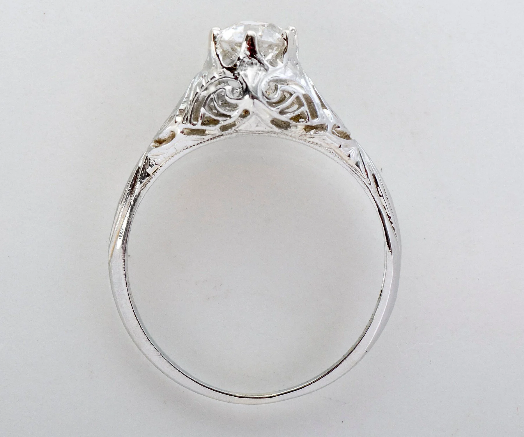 Antique Engagement Ring - Antique Edwardian Belais 18k White Gold Diamond Engagement Ring 1910's 18k White Gold Belais European Cut Diamond =.58ct VS1/F Ring Size 5.75 (ring is sizable) Ring measures approximately 7.8mm at center, back of band is 1.3mm wide.