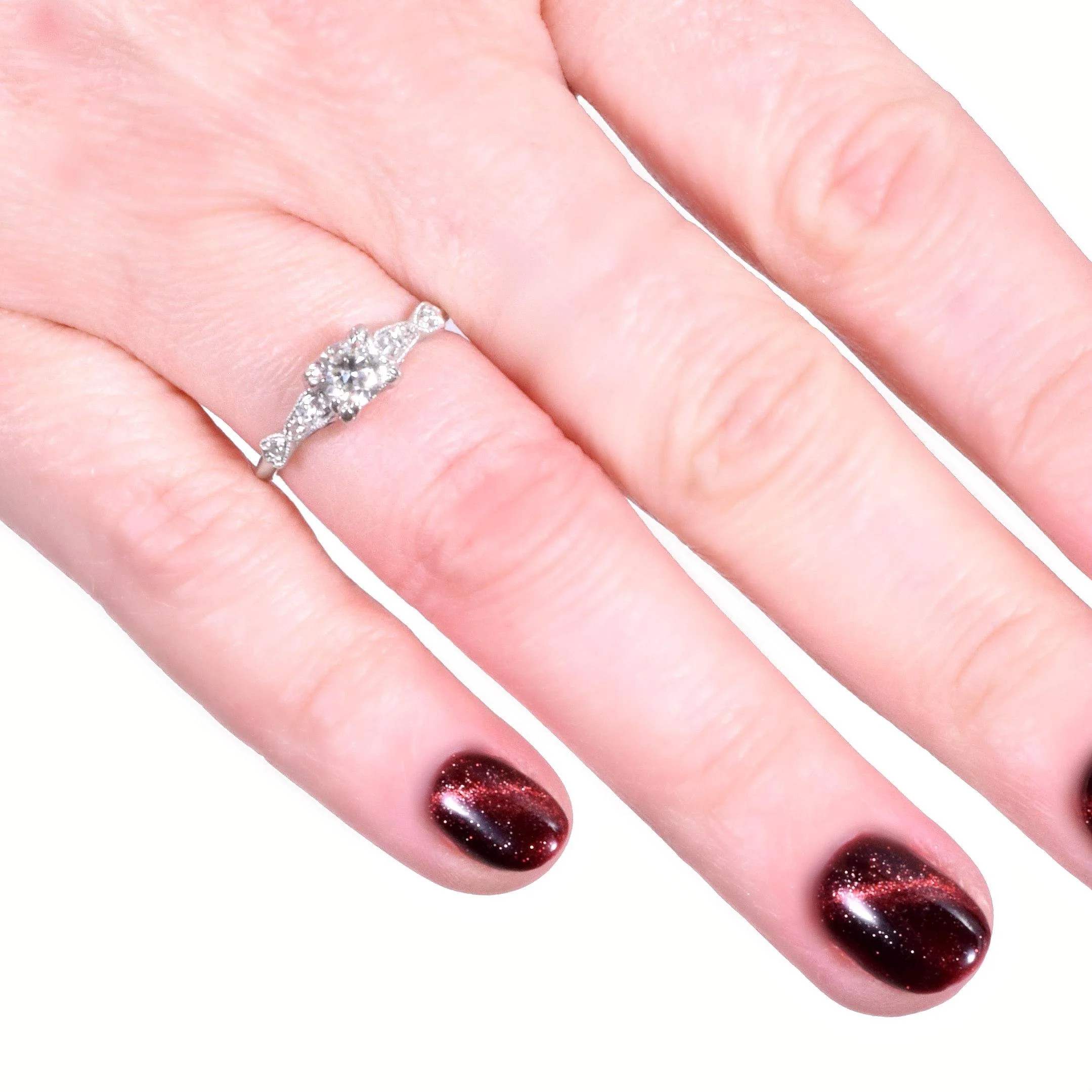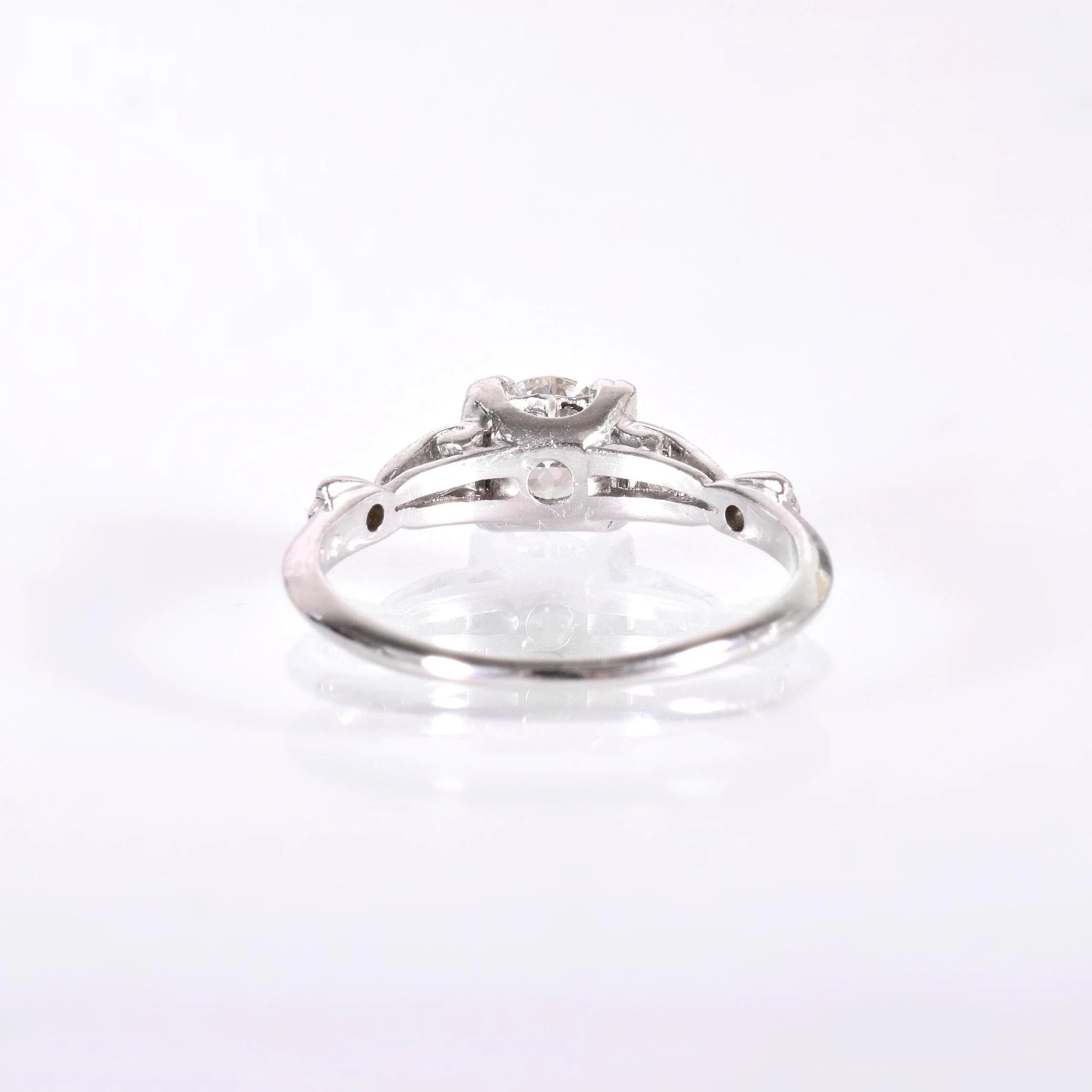 Antique Engagement Ring - Antique Platinum Diamond Engagement Ring Circa 1920's Platinum European Cut Diamond =.46ct VS1/G 6 Single Cut Diamonds =.08ct VS/G-H Ring Size 5.5 (sizable) Ring measures approximately 5.4mm wide at center, back of band is 1.4mm wide.