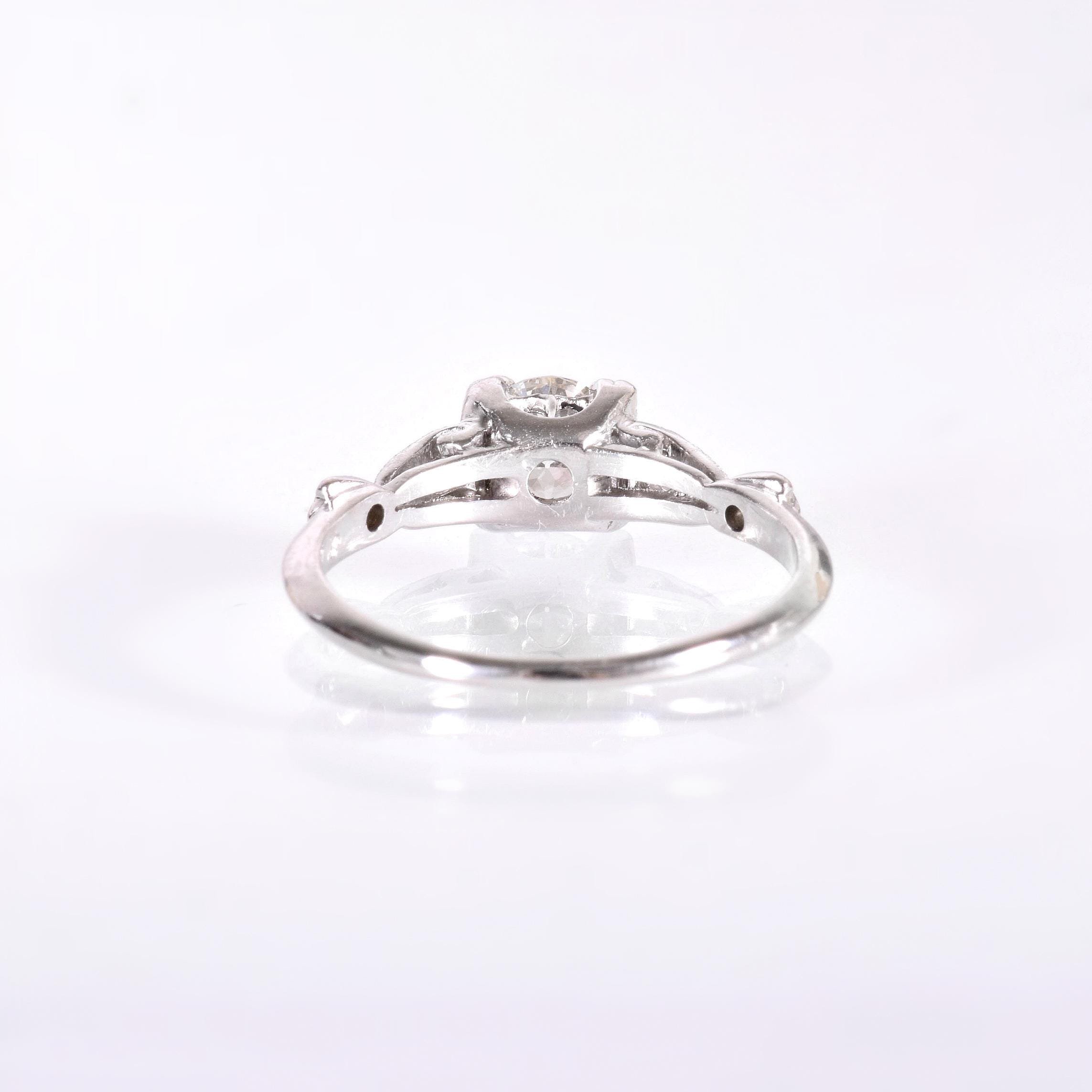 Antique Engagement Ring - Antique Platinum Diamond Engagement Ring Circa 1920's Platinum European Cut Diamond =.46ct VS1/G 6 Single Cut Diamonds =.08ct VS/G-H Ring Size 5.5 (sizable) Ring measures approximately 5.4mm wide at center, back of band is 1.4mm wide.