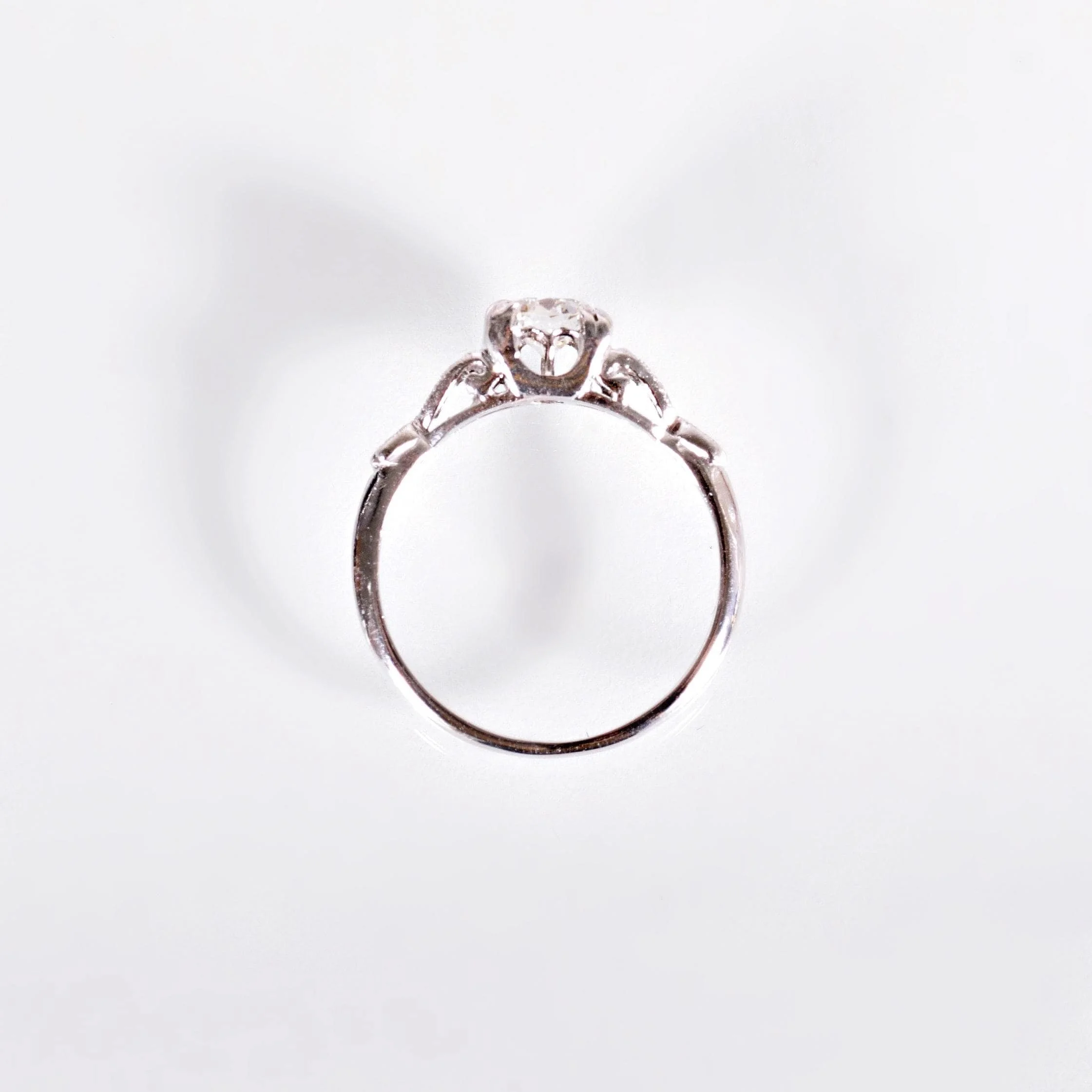 Antique Engagement Ring - Antique Platinum Diamond Engagement Ring Circa 1920's Platinum European Cut Diamond =.46ct VS1/G 6 Single Cut Diamonds =.08ct VS/G-H Ring Size 5.5 (sizable) Ring measures approximately 5.4mm wide at center, back of band is 1.4mm wide.