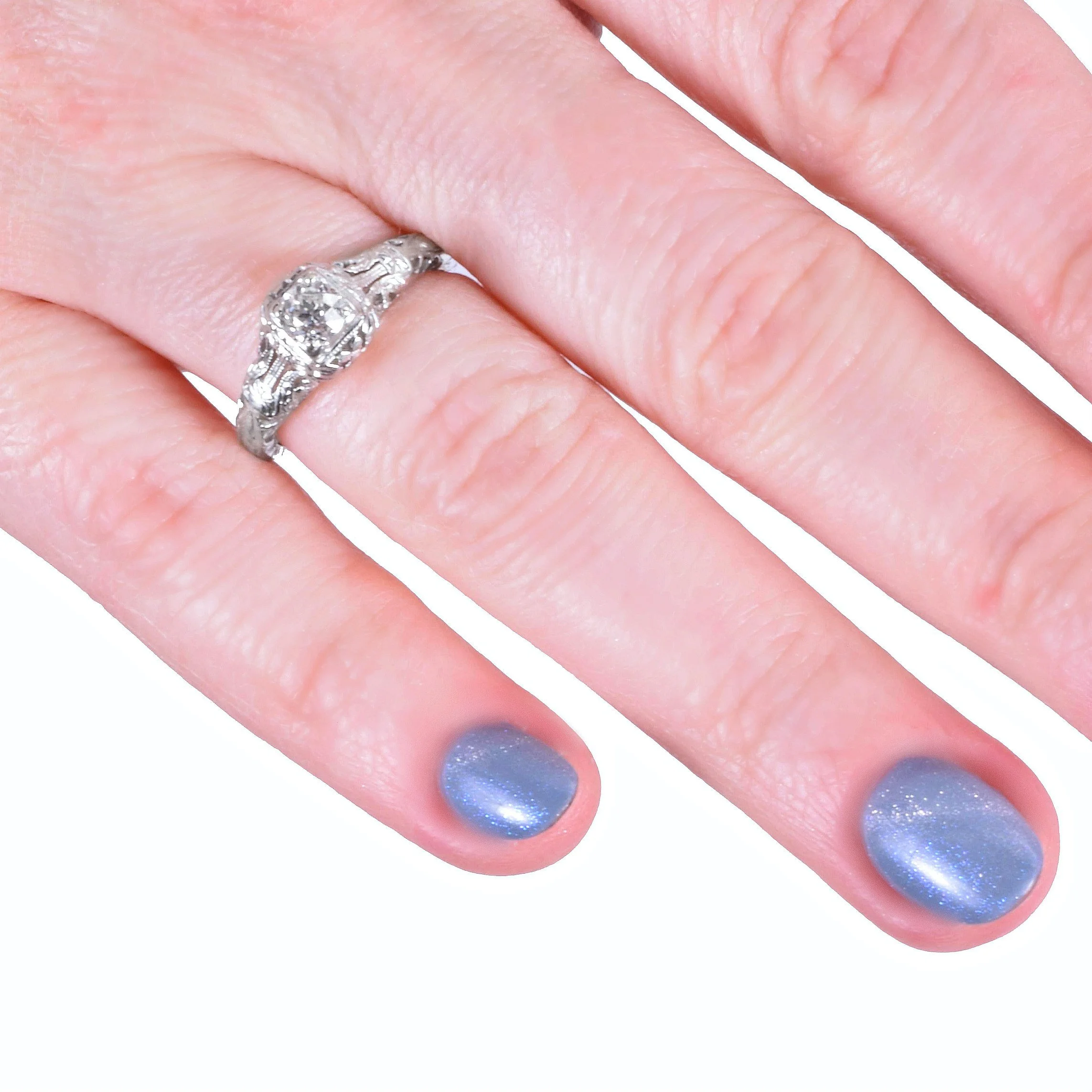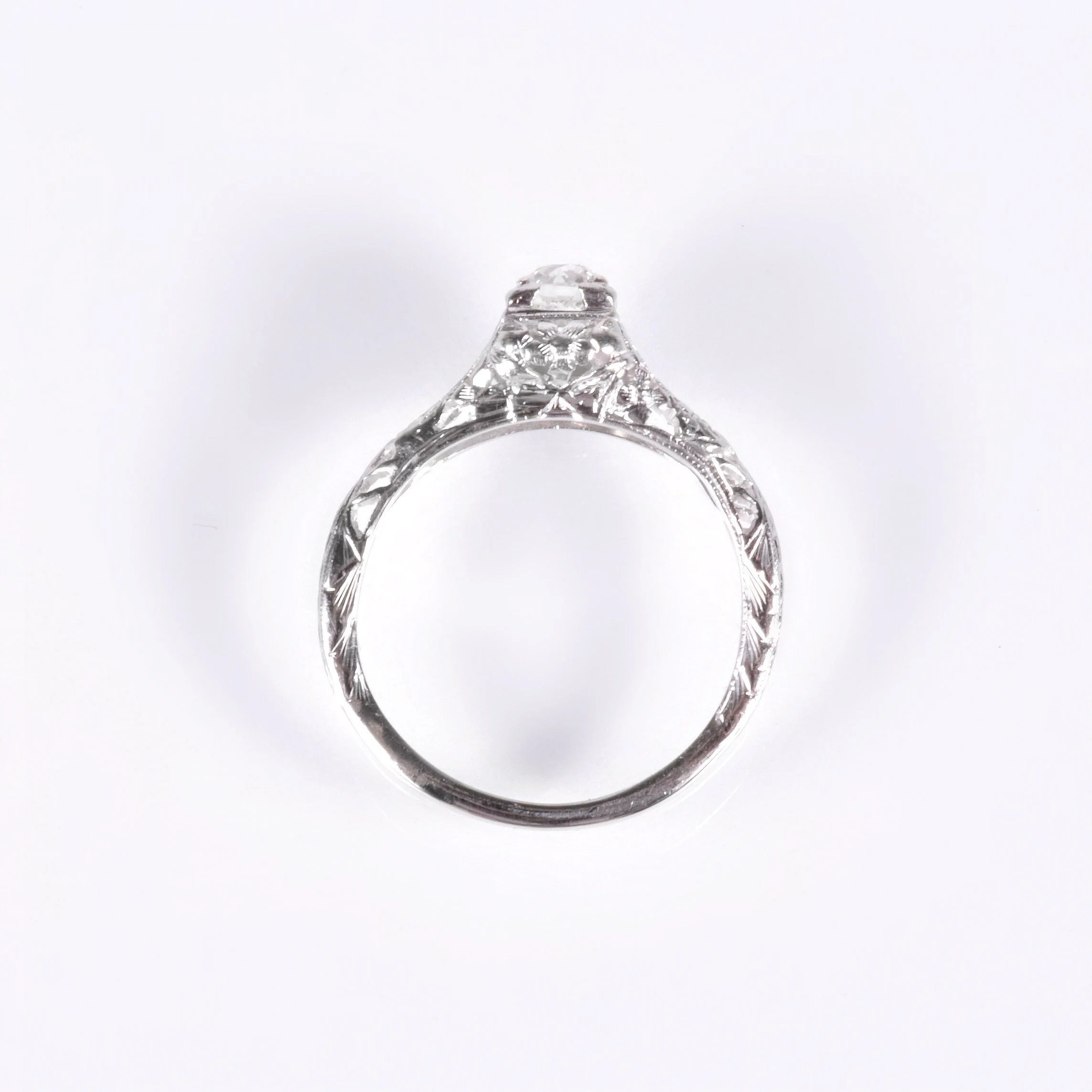 Antique Engagement Ring - Antique Platinum European Cut Diamond Ring 1910's Platinum European Cut Diamond =.35ct VS1/H Ring Size 5.5 (sizable) Ring measures approximately 7.5mm tall at center, back of band is 1.4mm wide.