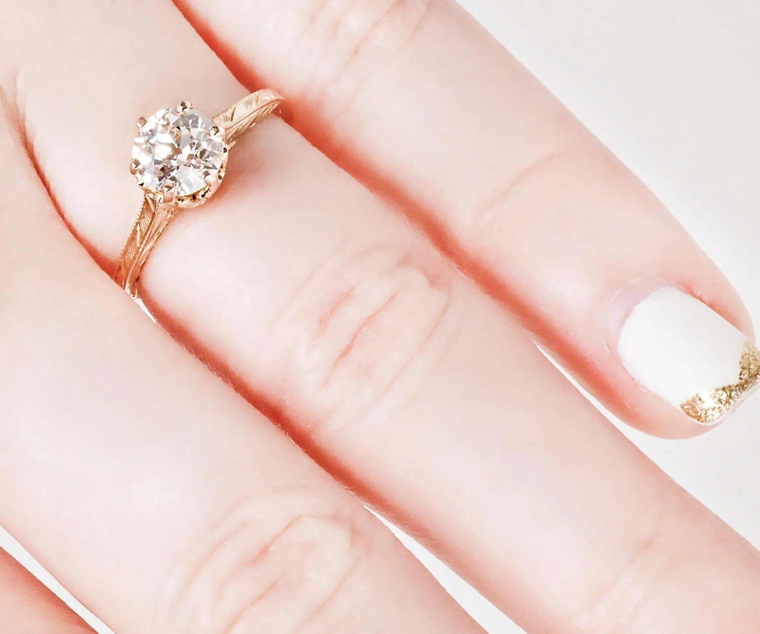 Antique Engagement Ring - Antique Rose Gold Diamond Solitaire Engagement Ring