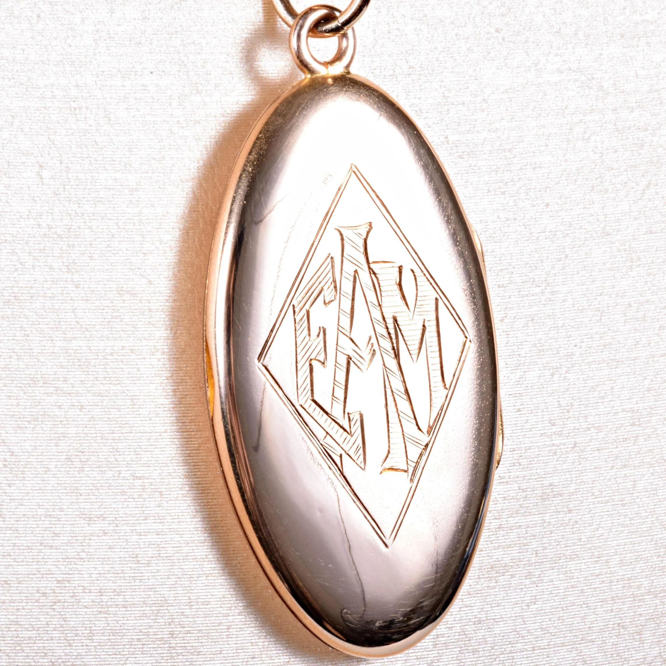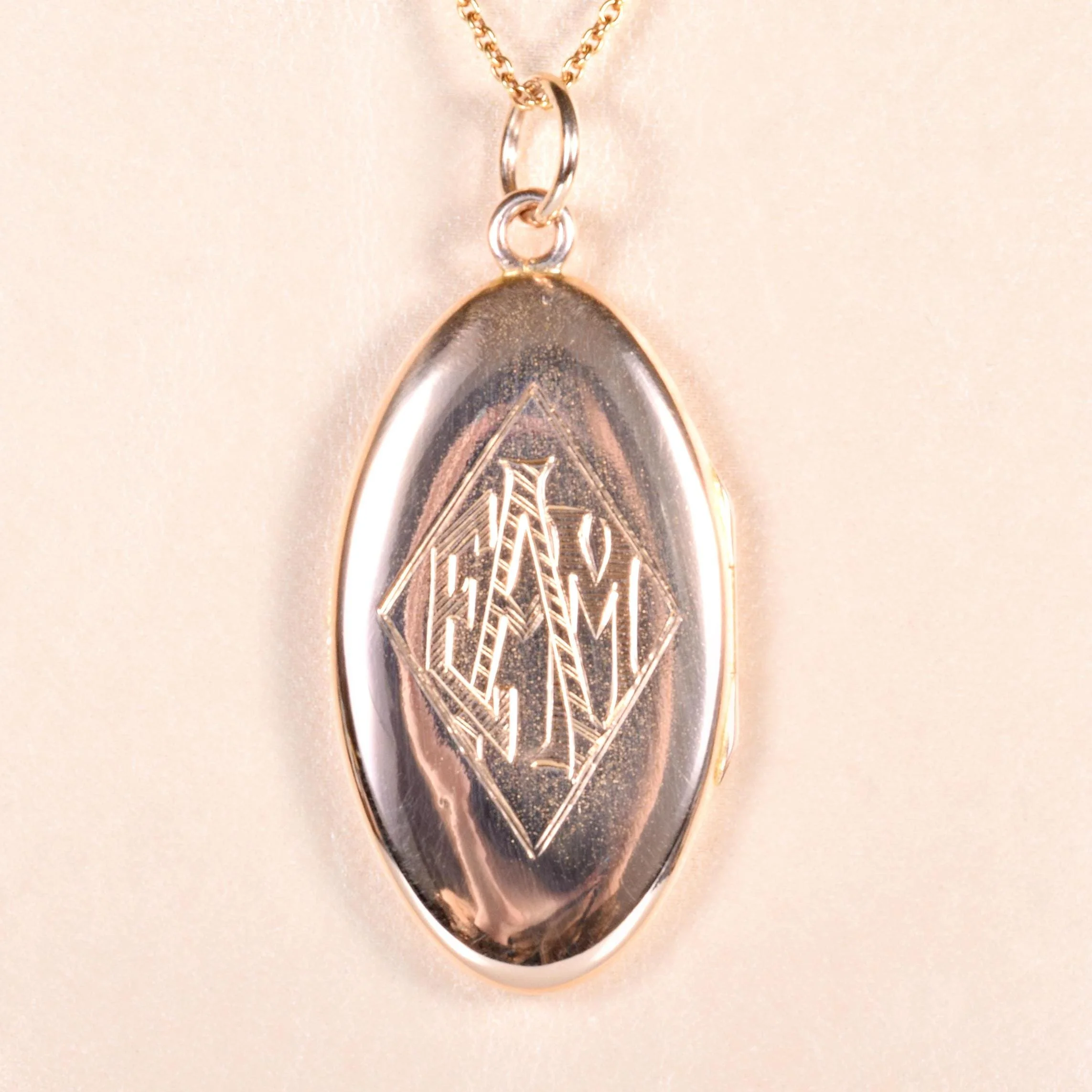 Antique Locket - Antique 18k Yellow Gold Engraved "EAM" Picture Locket