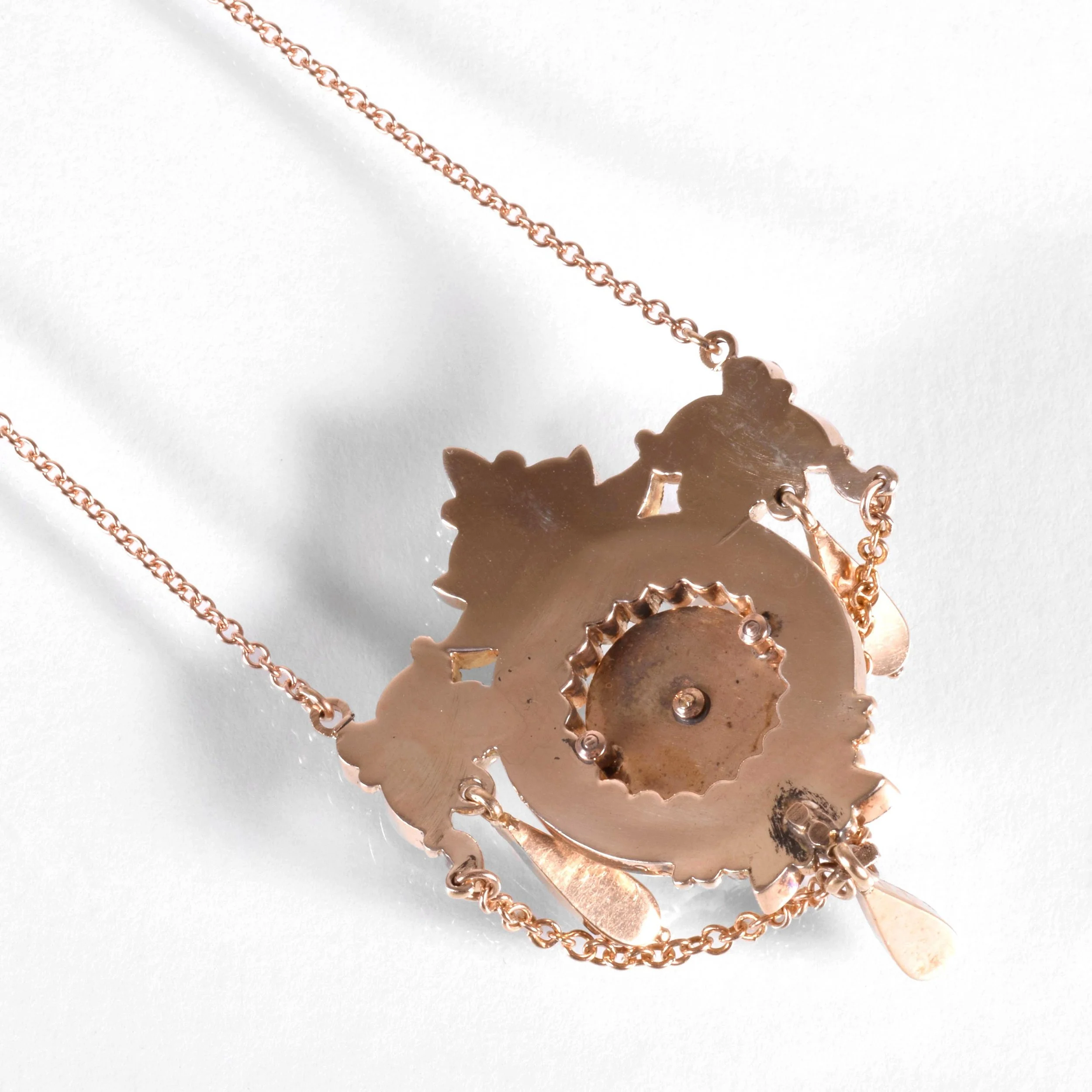 Antique Necklace - Antique 14k Rose Gold Victorian Black Onyx & Seed Pearl Conversion Necklace