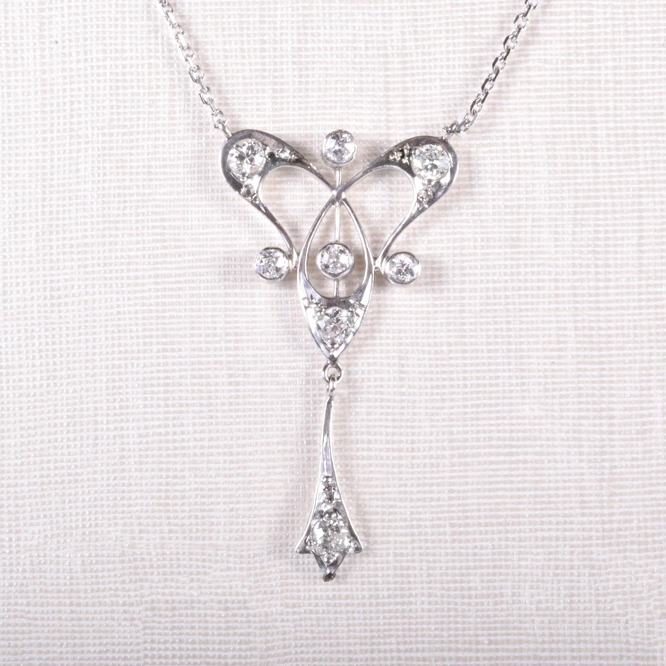 Antique Necklace - Antique 14k White Gold Diamond Lavalier Pendant