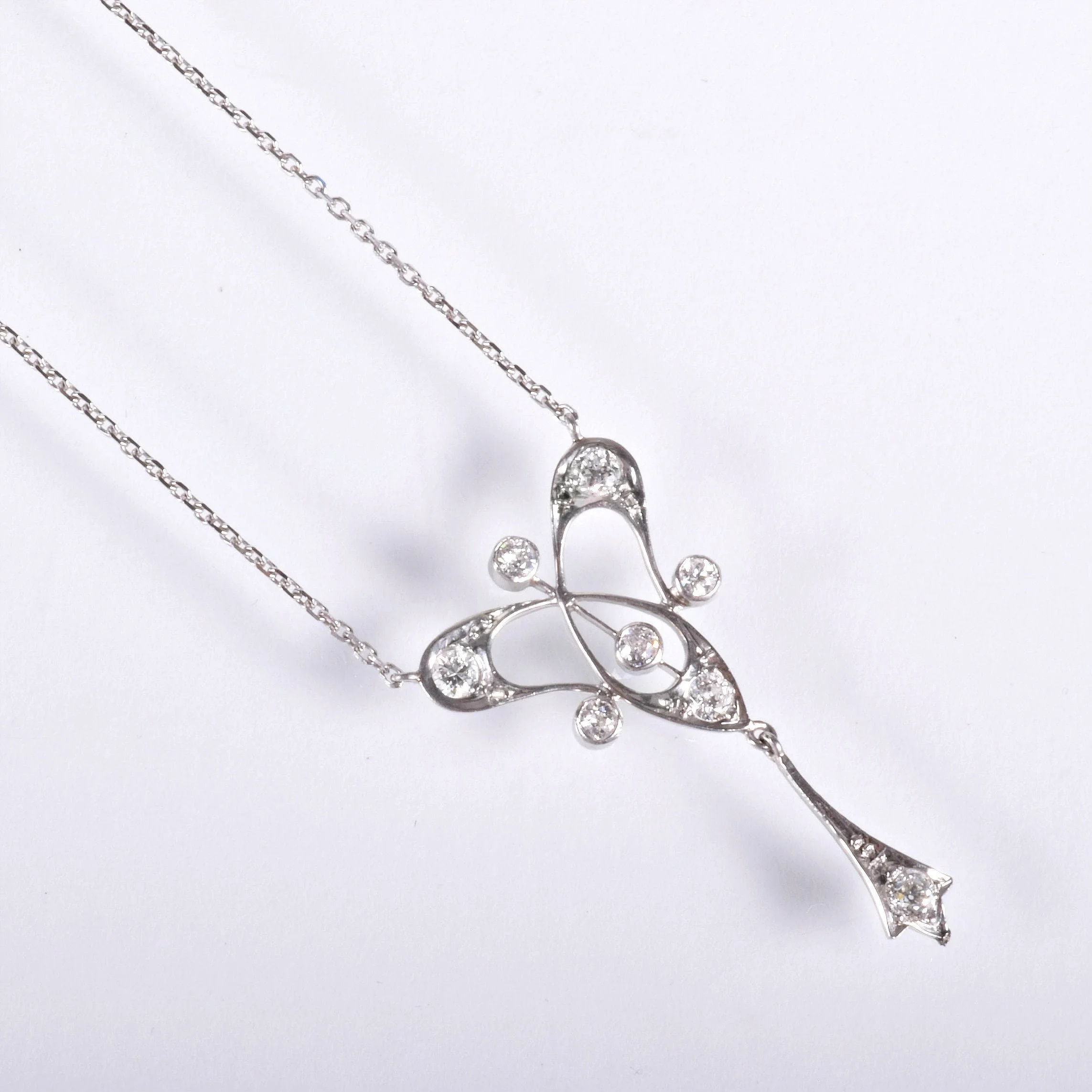 Antique Necklace - Antique 14k White Gold Diamond Lavalier Pendant 14k White Gold 8 European Cut Diamonds =1/2ct VS1-SI1/G-H Pendant measures approximately 1.25" tall and 5/8" wide. Entire length of necklace is 17.5" long.