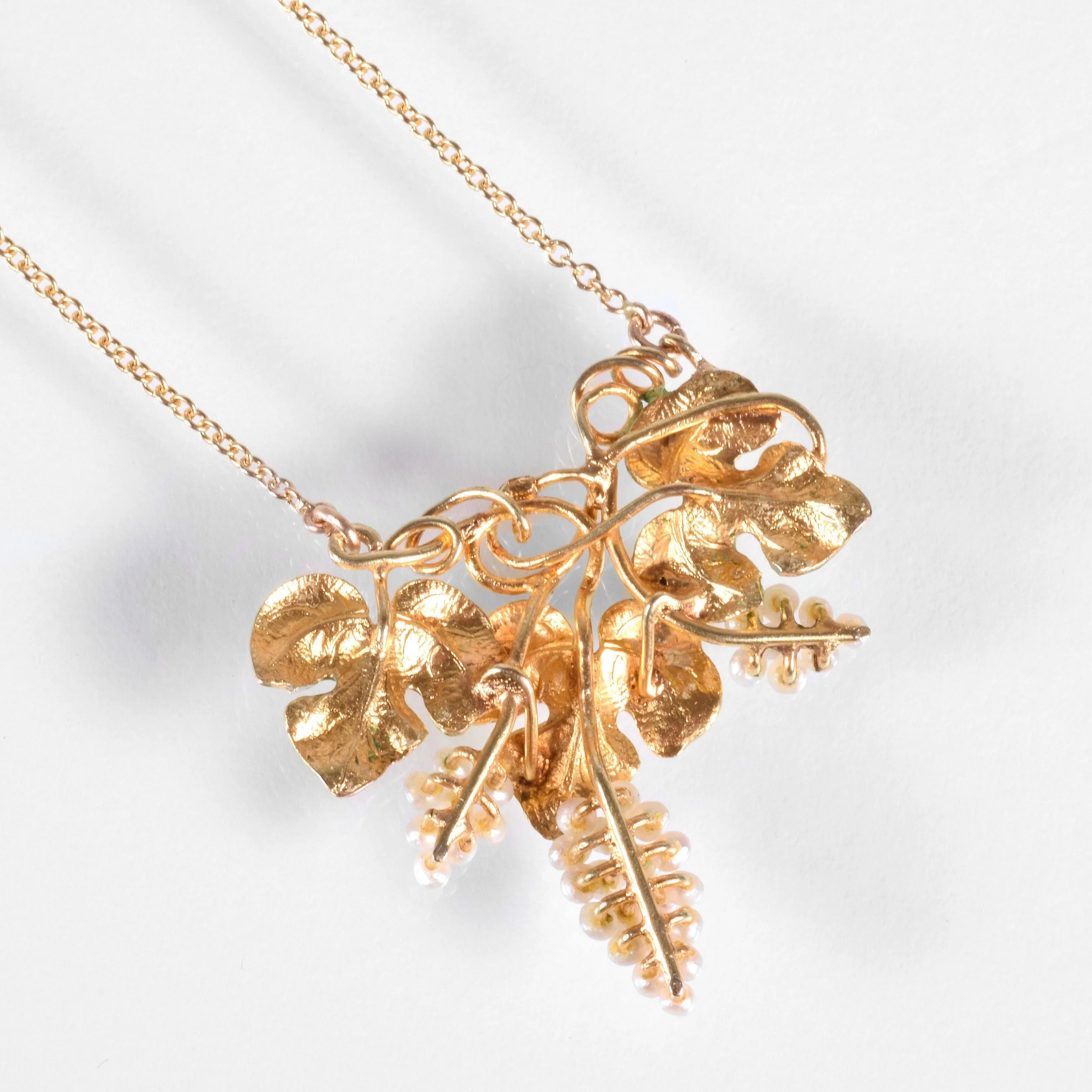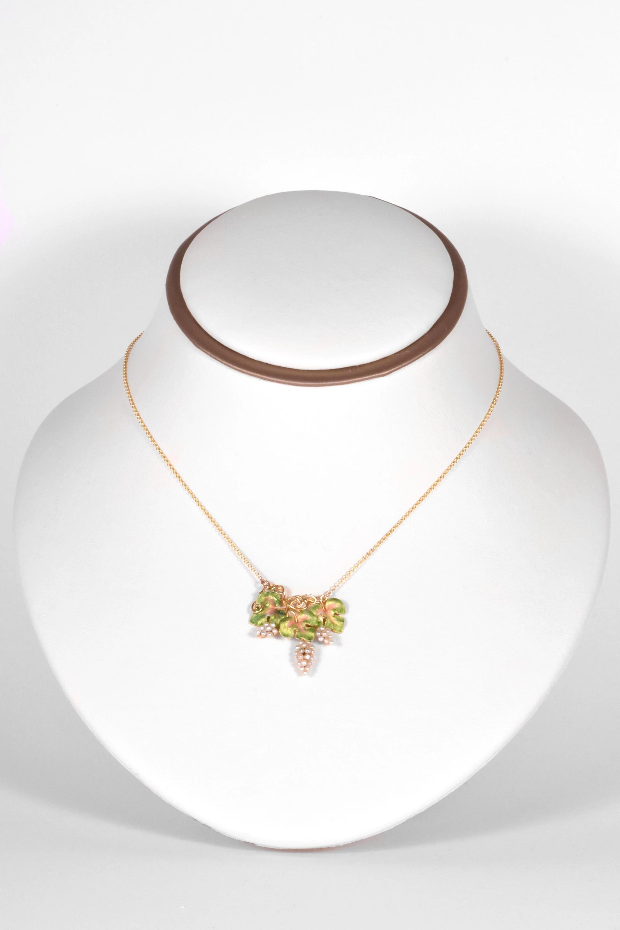 Antique Necklace - Antique 14k Yellow Gold Art Nouveau Enamel Seed Pearl Conversion Necklace