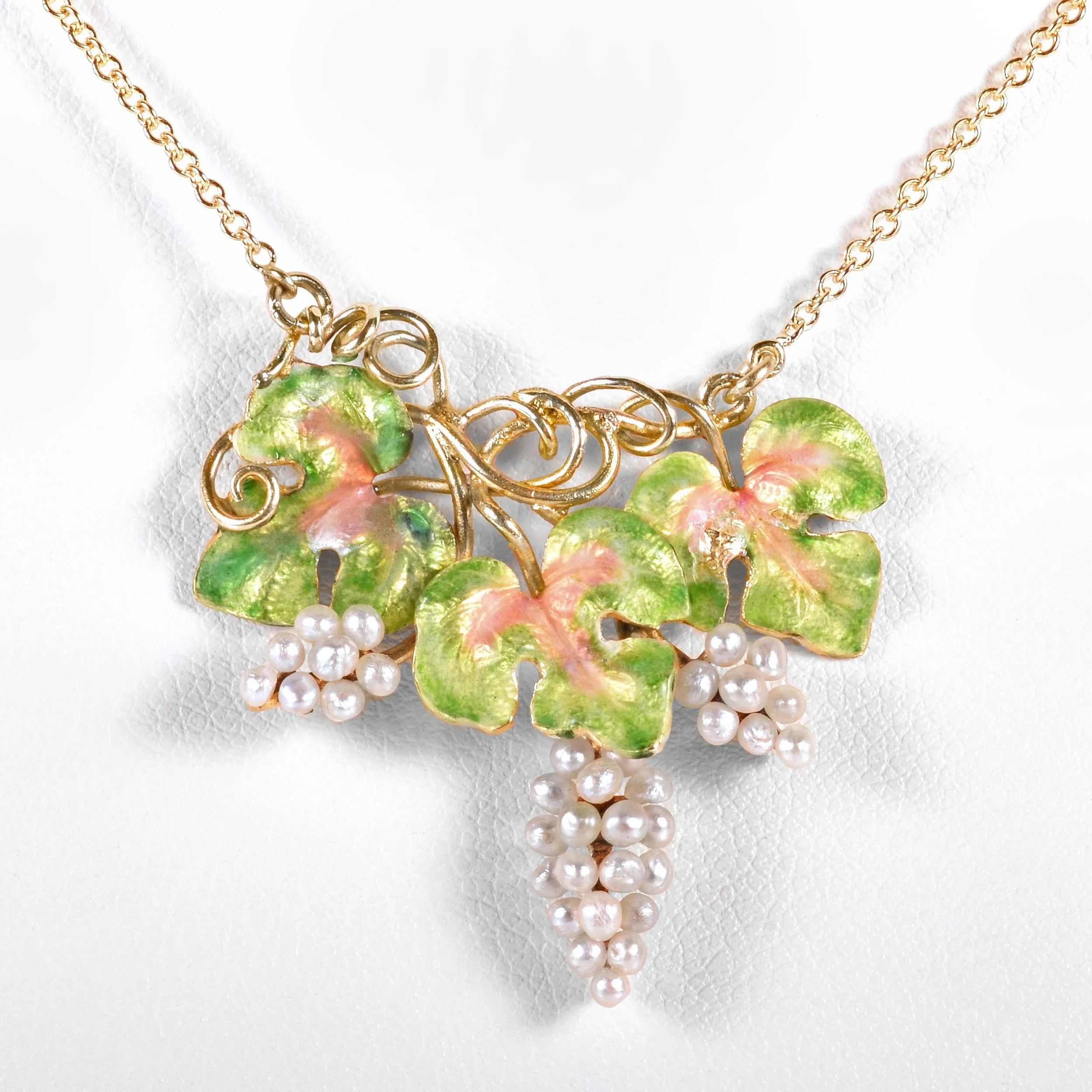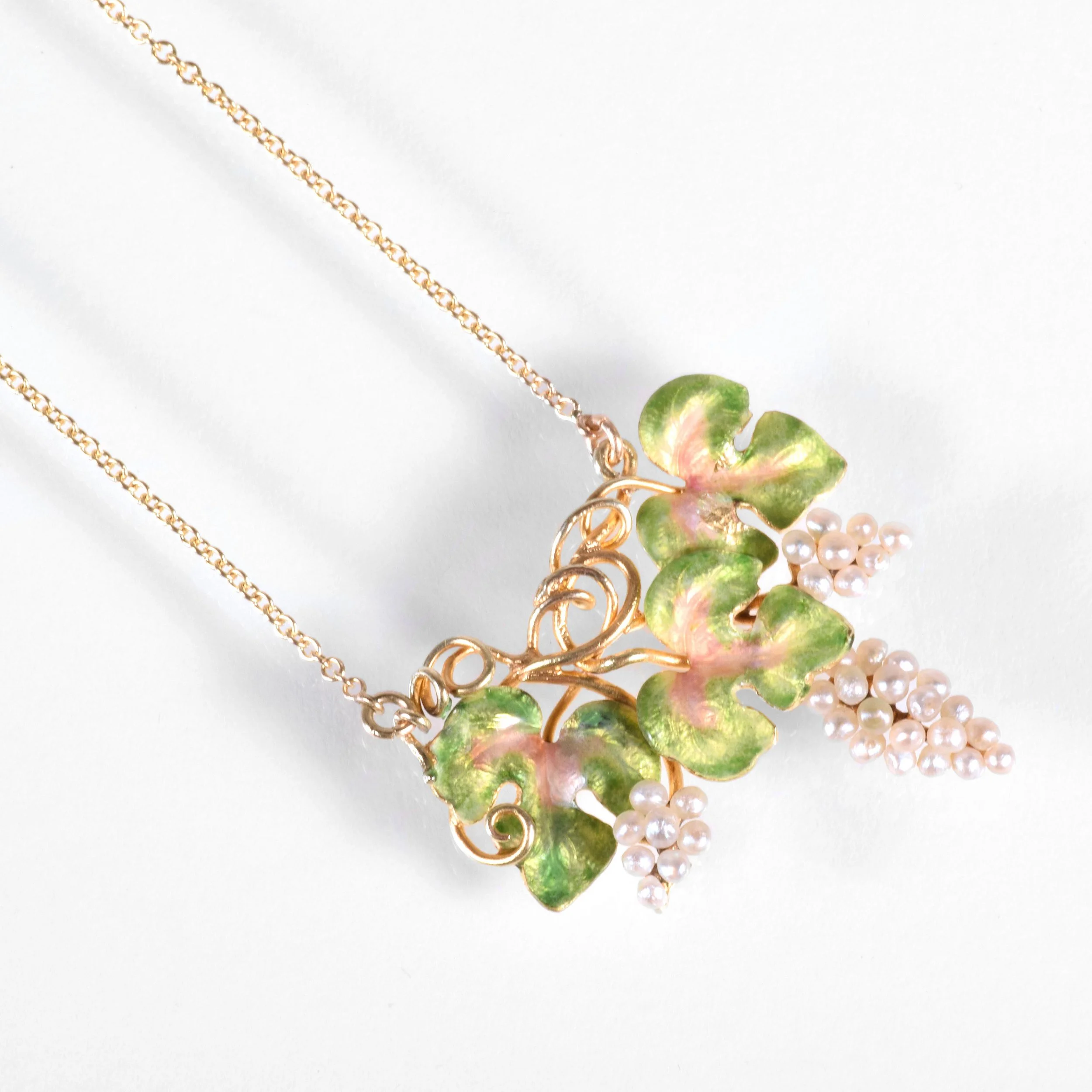 Antique Necklace - Antique 14k Yellow Gold Art Nouveau Enamel Seed Pearl Conversion Necklace
