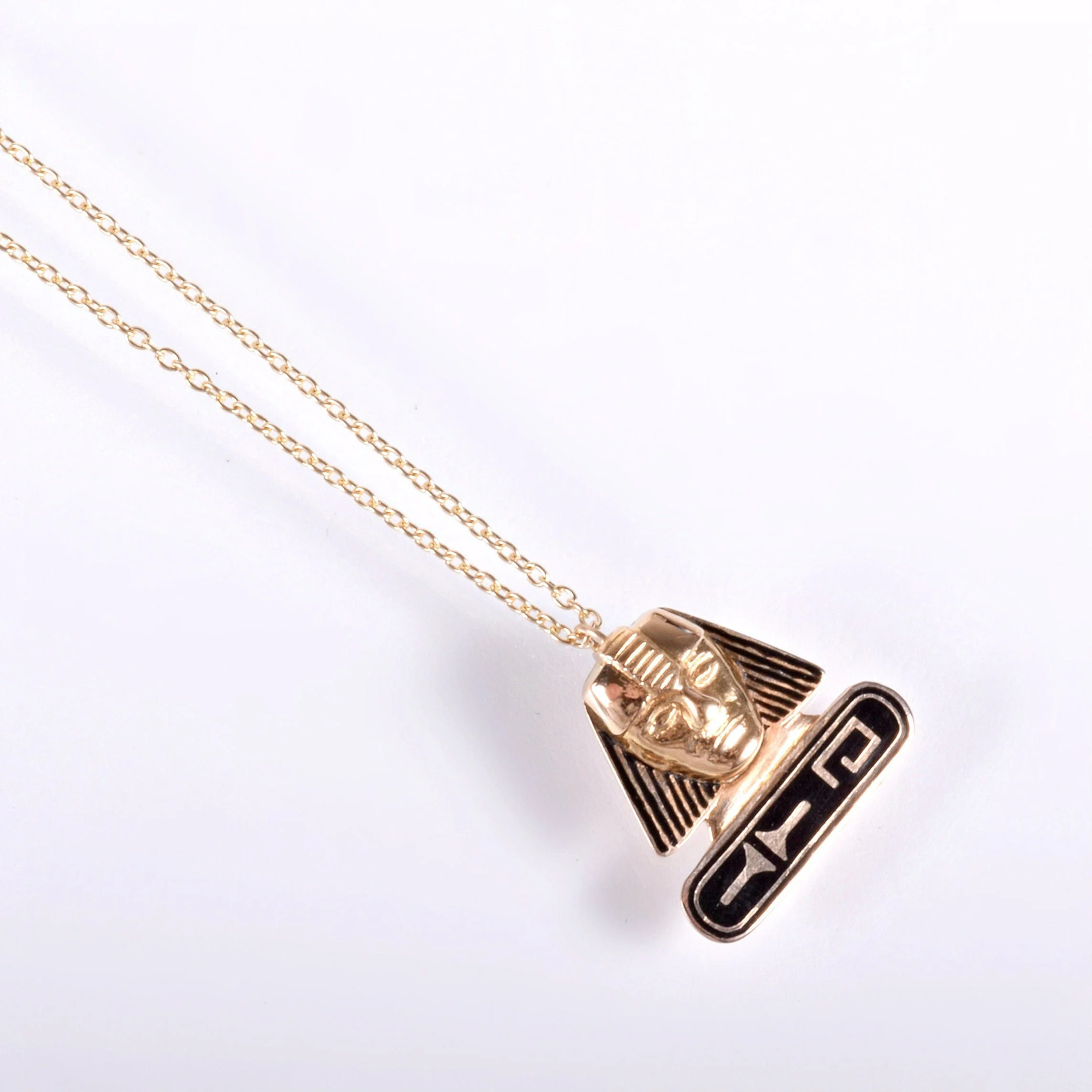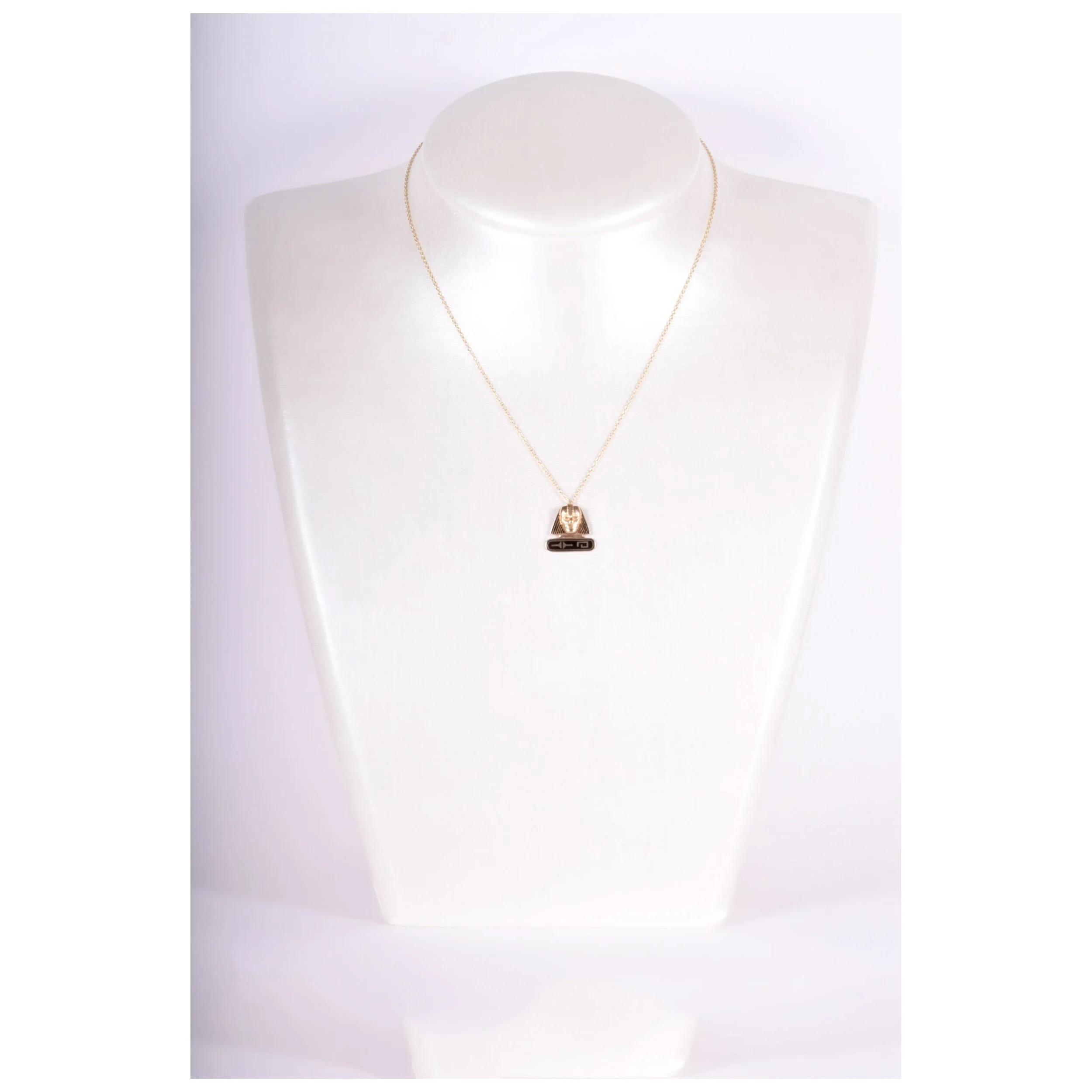 Antique Necklace - Antique 14k Yellow Gold Black Enamel Egyptian Revival Pendant Egyptian Revival Circa 1920's 14k Yellow Gold Black Enamel Pendant measures approximately 5/8" wide and 5/8" tall. New 14k yellow gold chain is 17" long with a jump ring at 16"