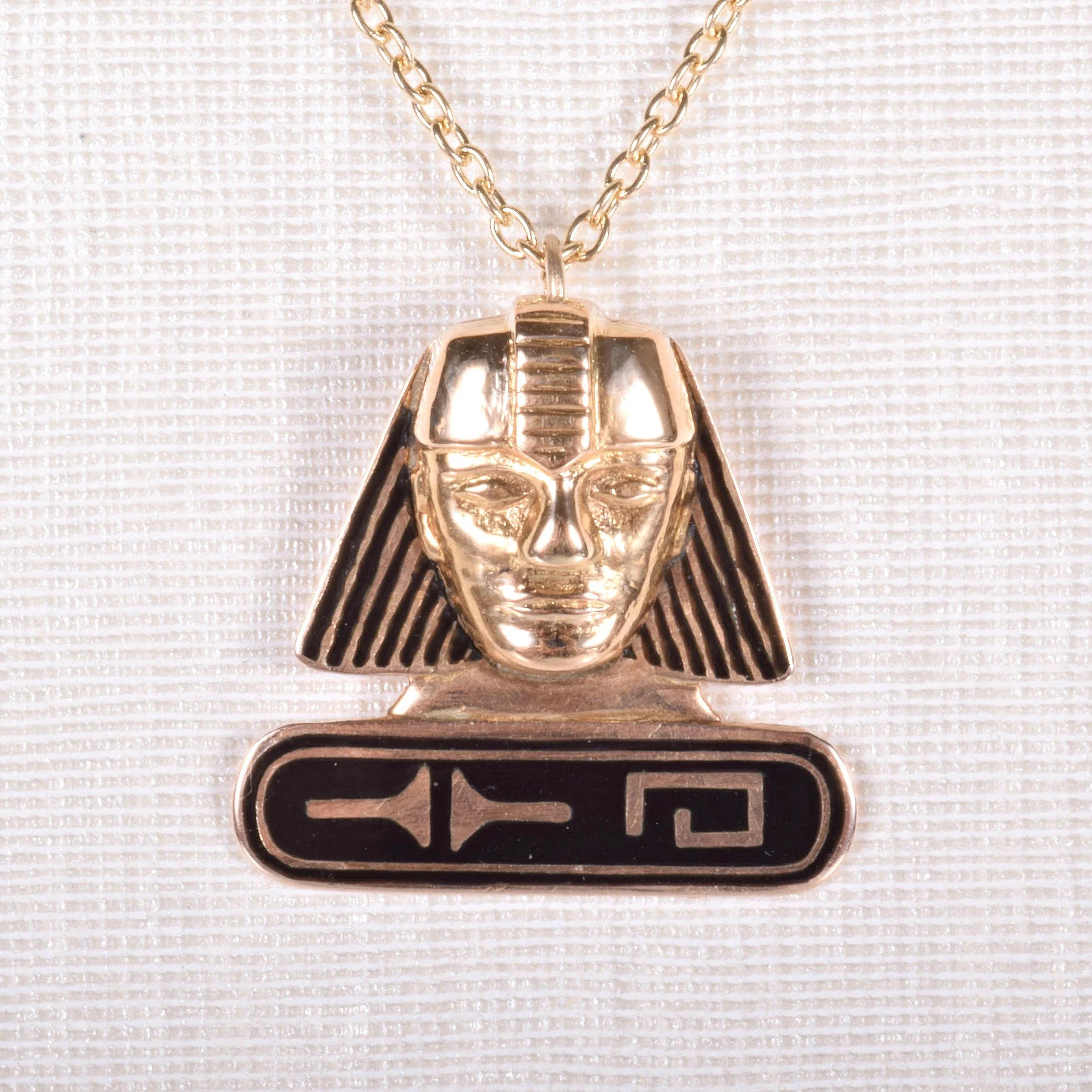 Antique Necklace - Antique 14k Yellow Gold Black Enamel Egyptian Revival Pendant