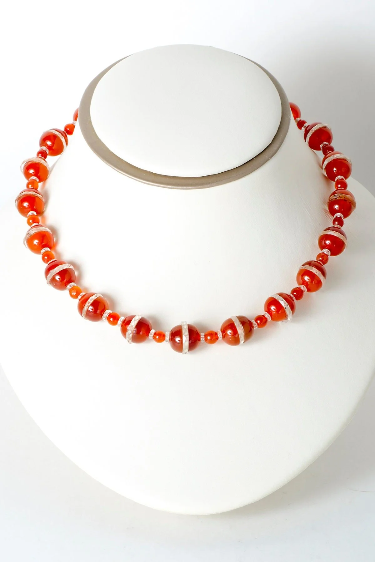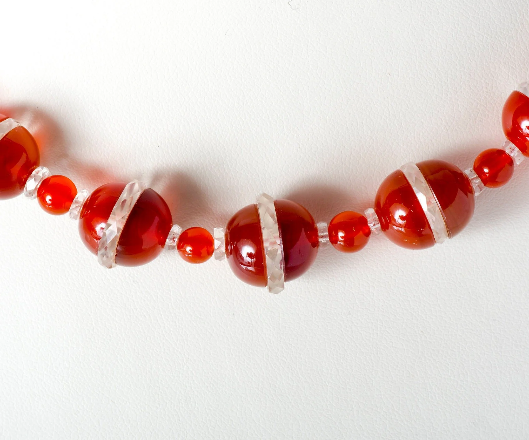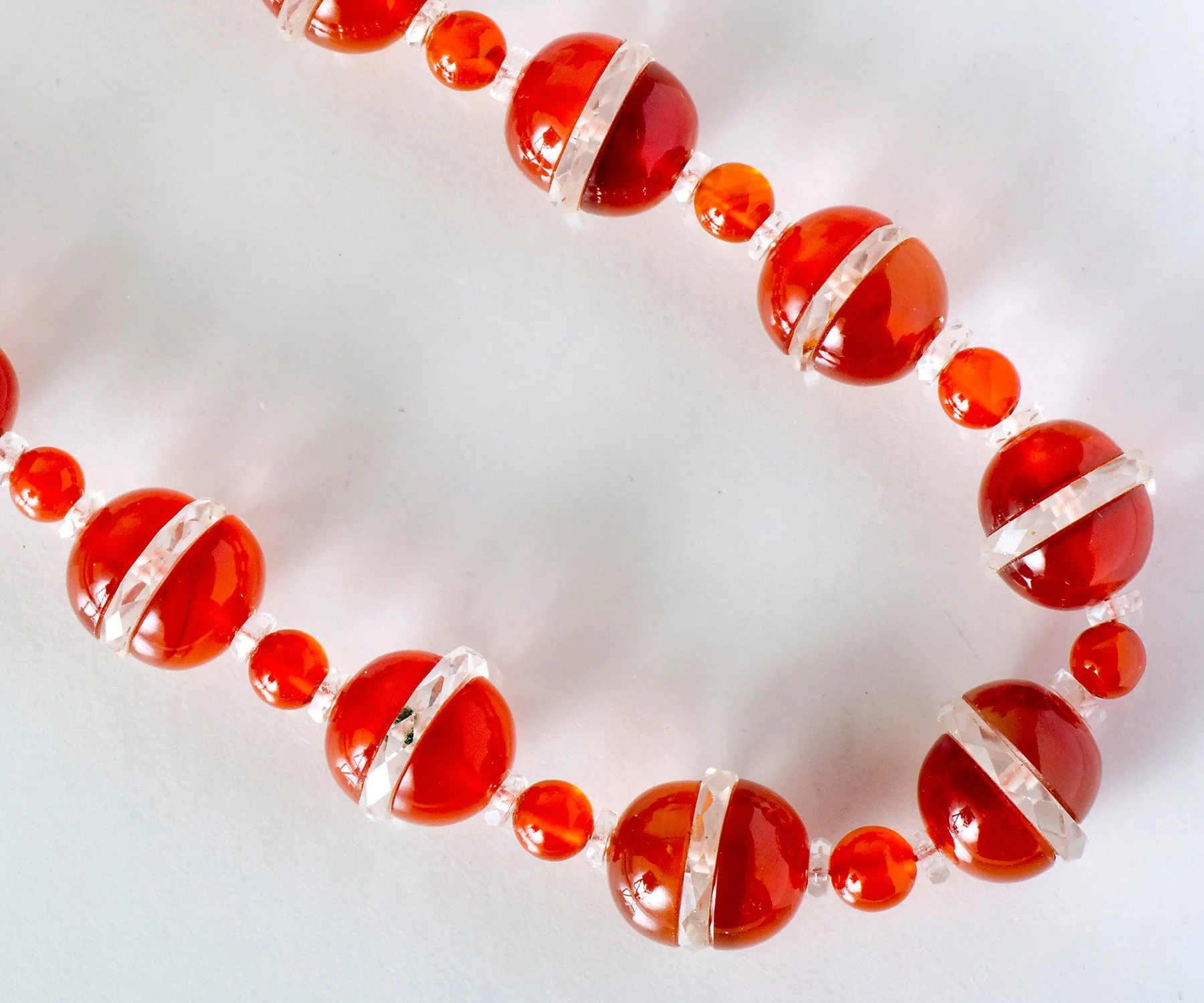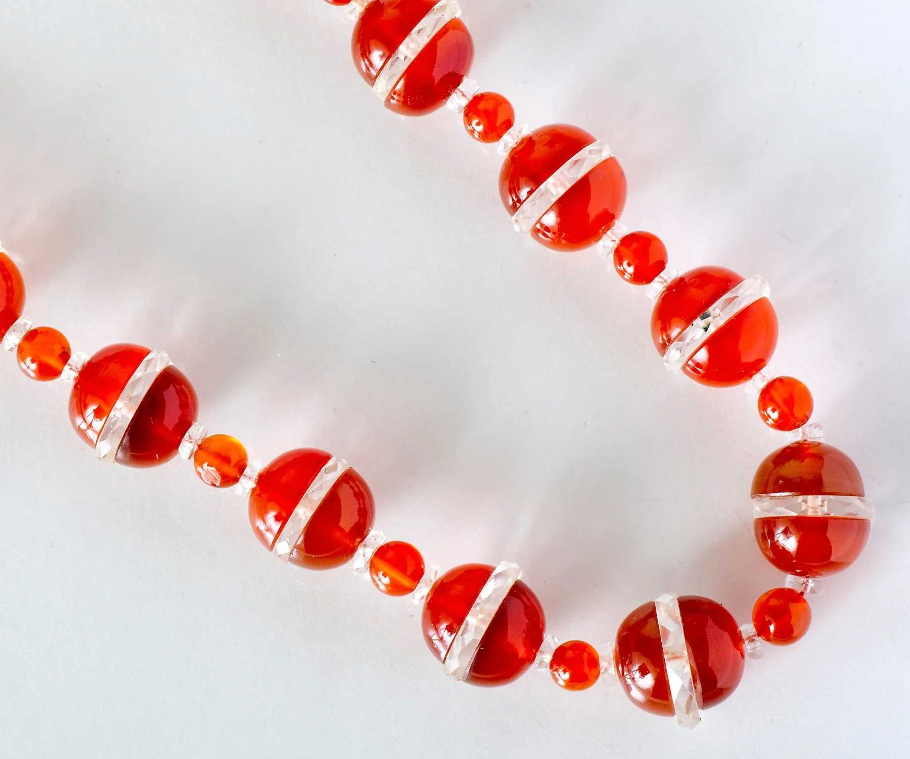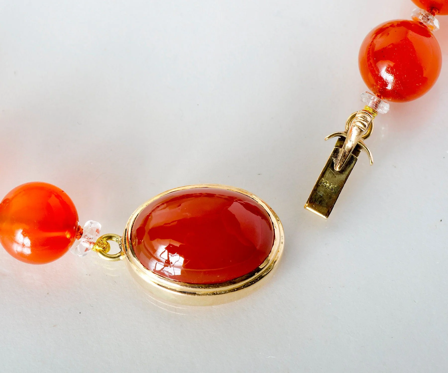 Bold and vivid is this fabulous 18" 14k yellow gold carnelian and crystal bead necklace from the 30's. Make a "wow" antique statement around your neck and compliment whatever you are wearing, be it casual or fancy!