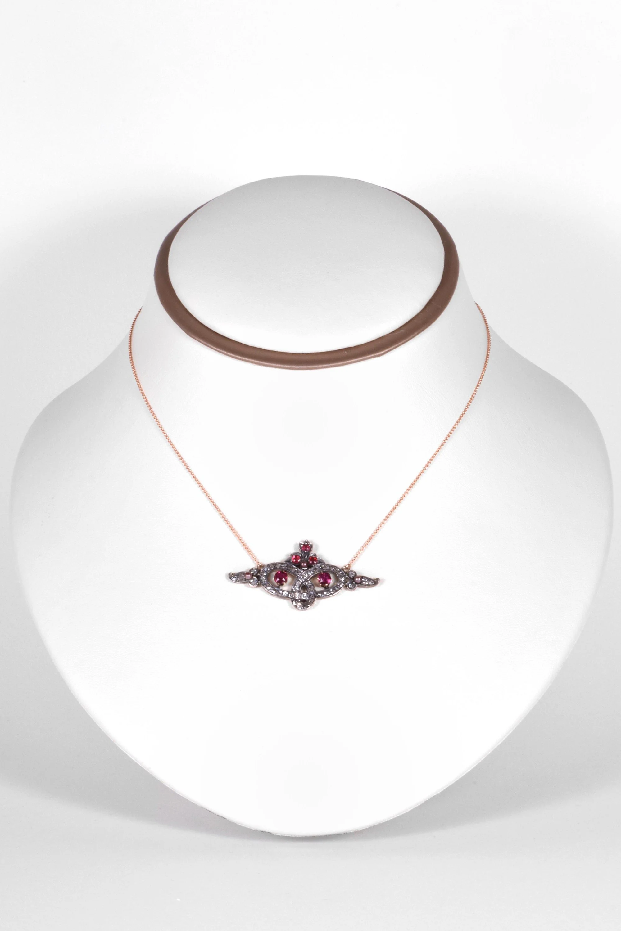 Antique Necklace - Antique 14k Yellow & Rose Gold Sterling Silver Georgian Diamond, Ruby, and Natural Seed Pearl Conversion Necklace