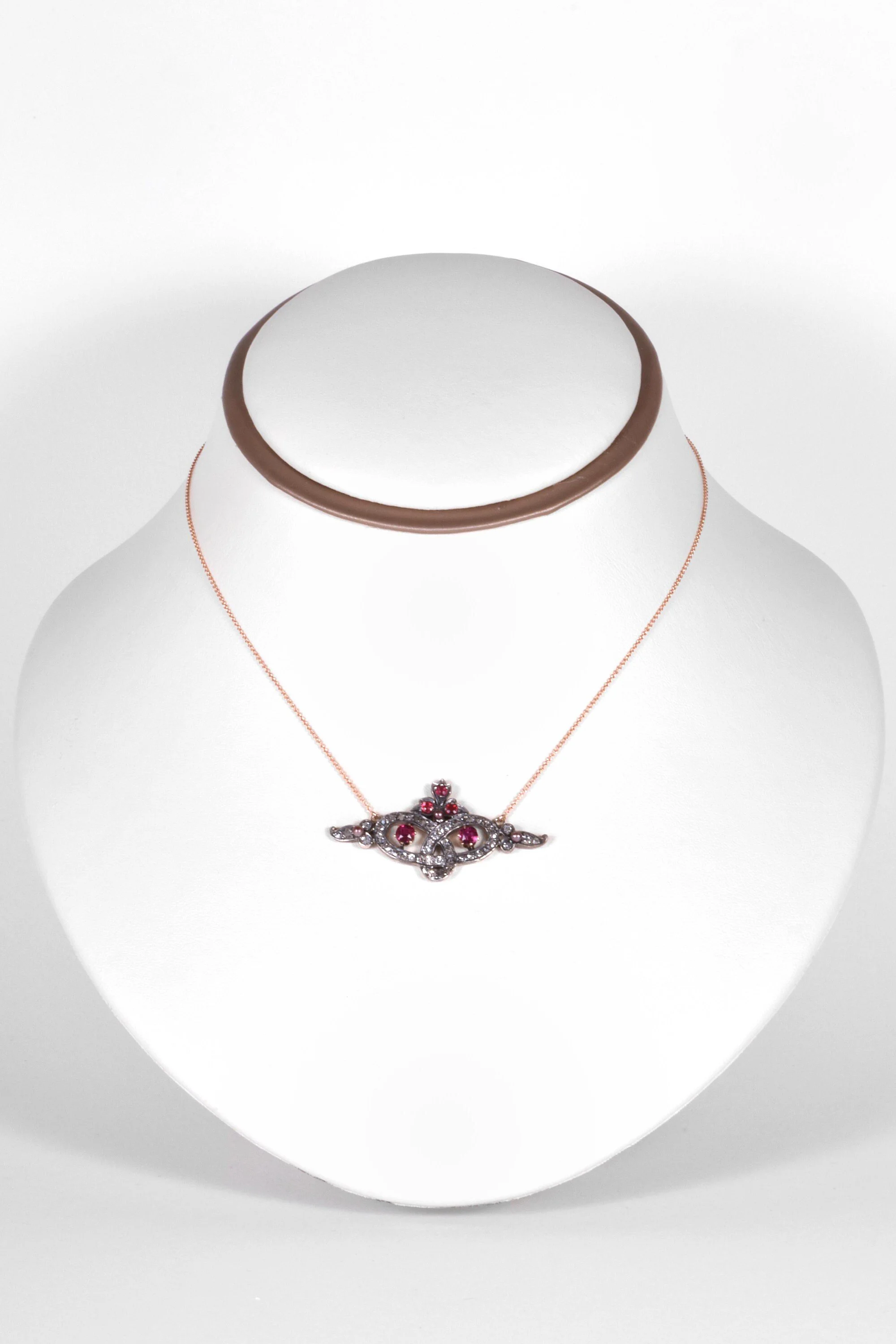 Antique Necklace - Antique 14k Yellow & Rose Gold Sterling Silver Georgian Diamond, Ruby, and Natural Seed Pearl Conversion Necklace