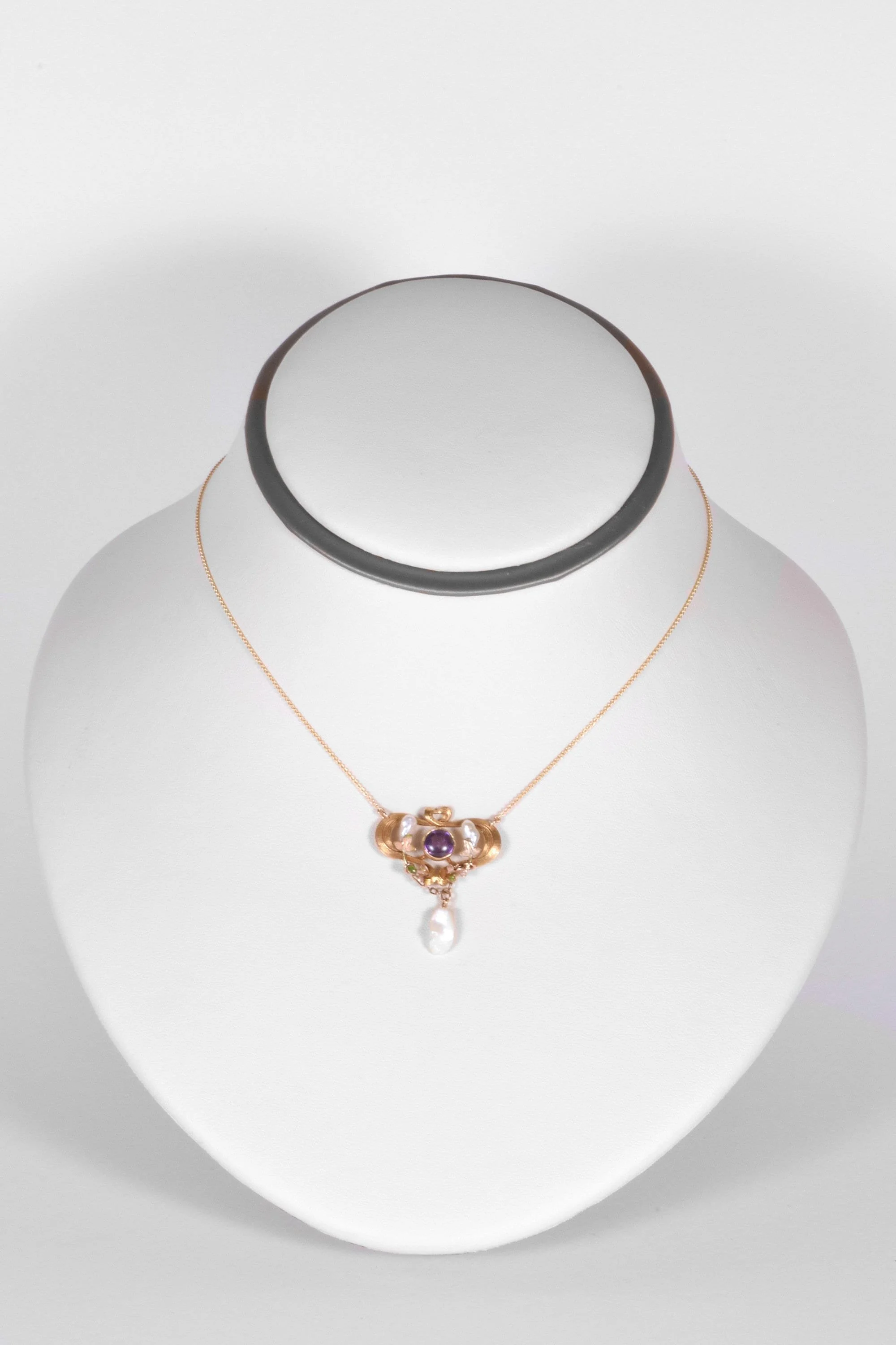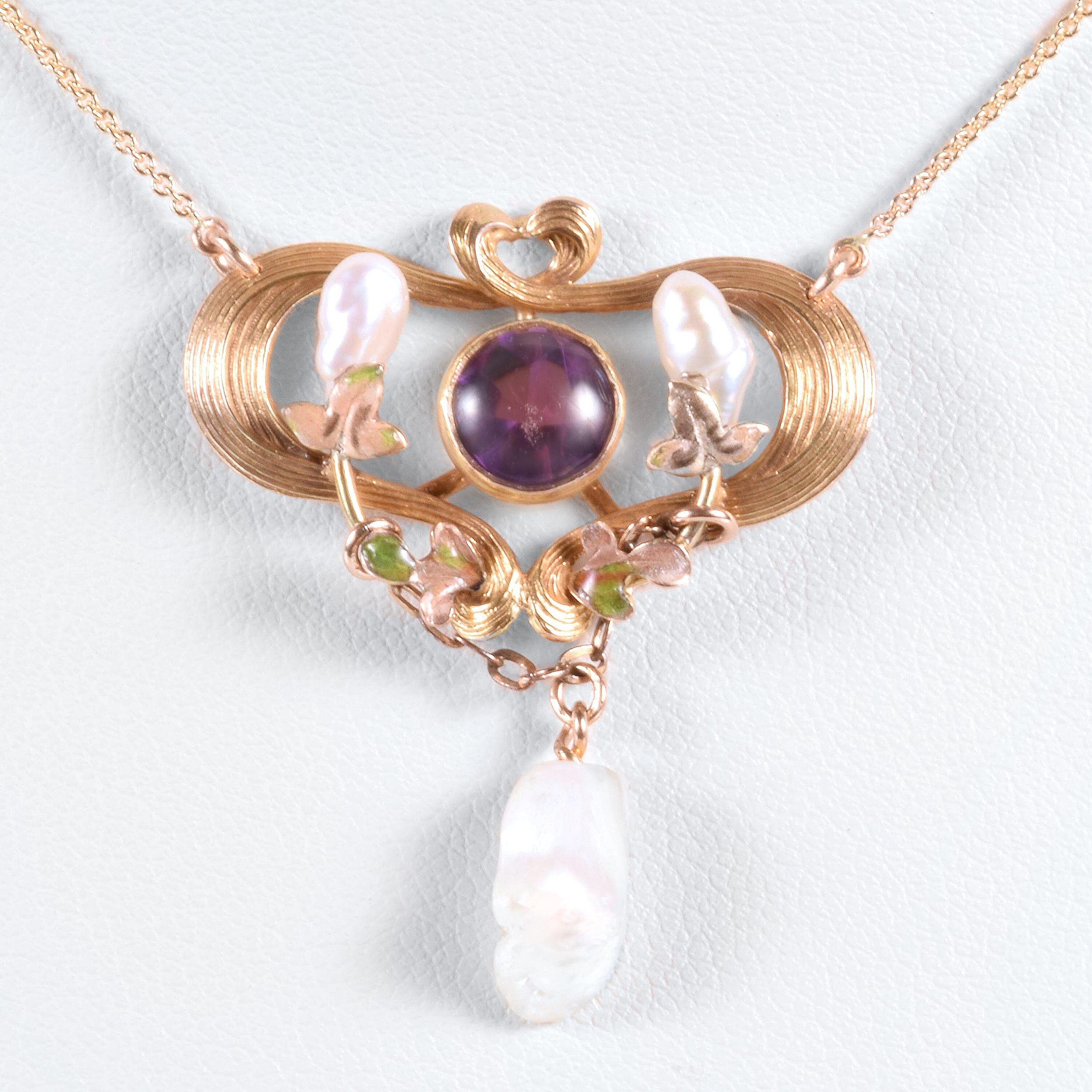 Antique Necklace - Antique 14k Yellow & Rose Gold Victorian Enamel Amethyst and Fresh Water Pearl Conversion Necklace