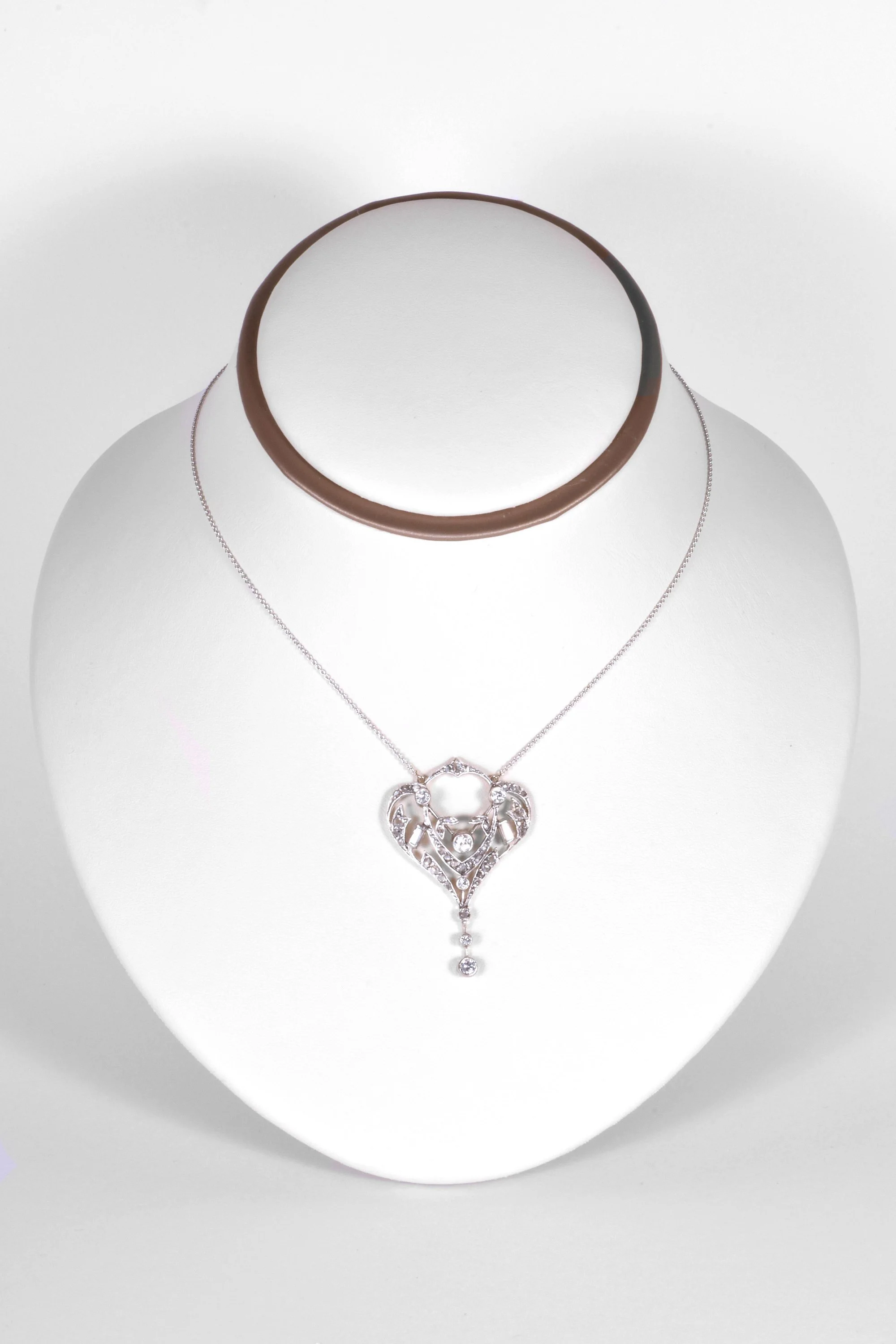 Antique Necklace - Antique Art Nouveau 14k White Gold Diamond Conversion Necklace