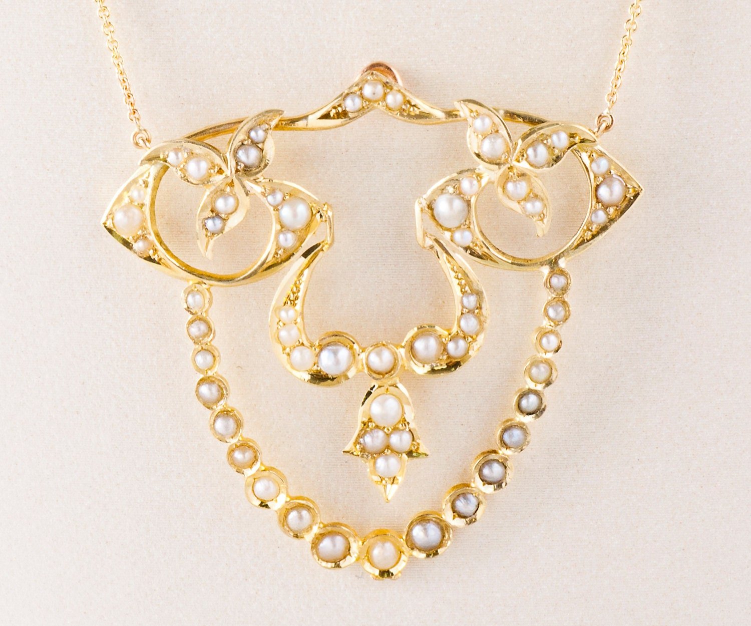 Antique Necklace - Antique Art Nouveau Yellow Gold Seed Pearl Necklace