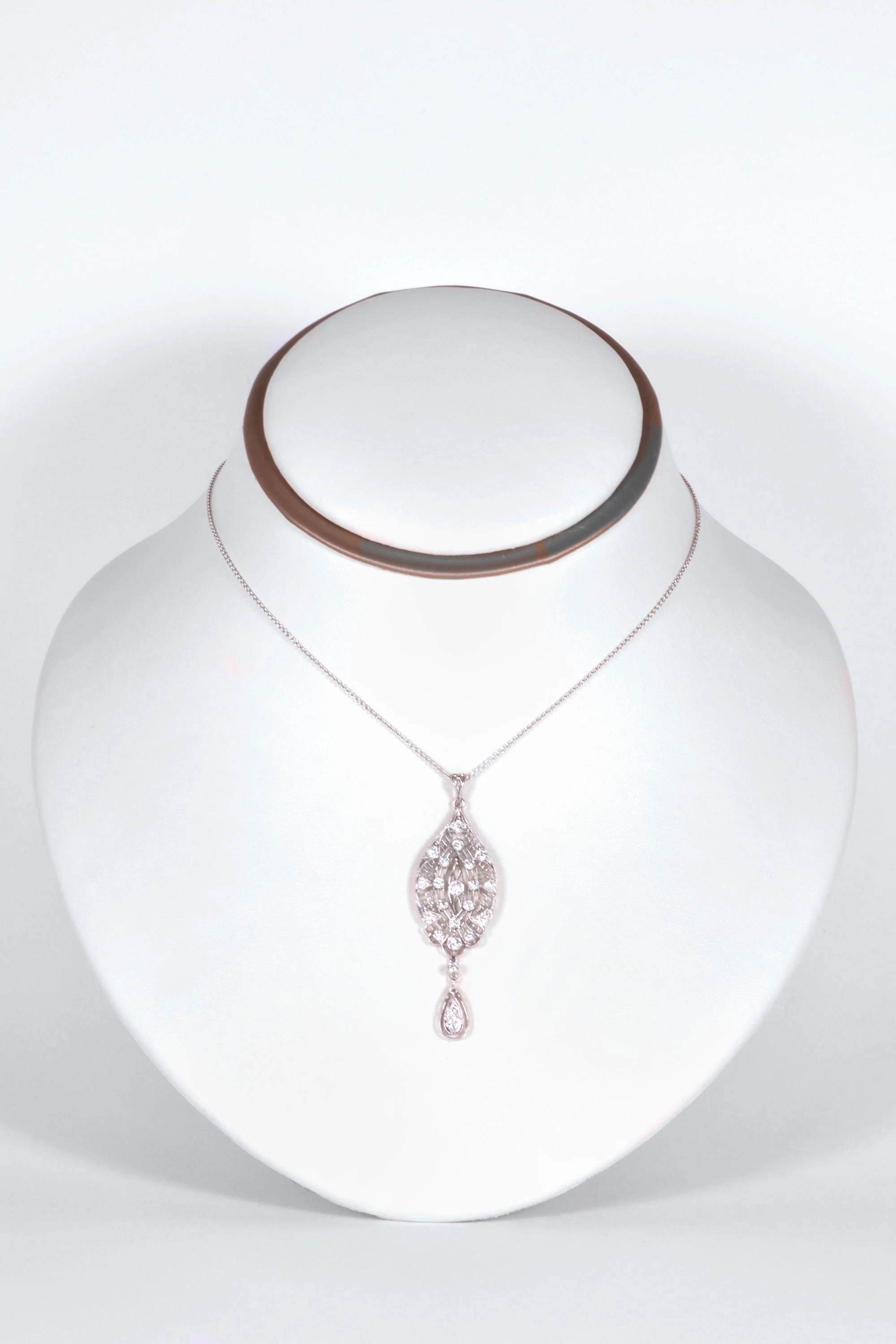 Antique Necklace - Antique Edwardian Platinum & 14k White Gold Diamond Necklace Platinum & 14k White Gold 22 European Cut Diamonds =1.50cts/ VVS-VS/F-G Pendant measures just under 3/4" wide and 2.25" tall at the center New 14k white gold chain measures 18" long with a jump loop at 16"
