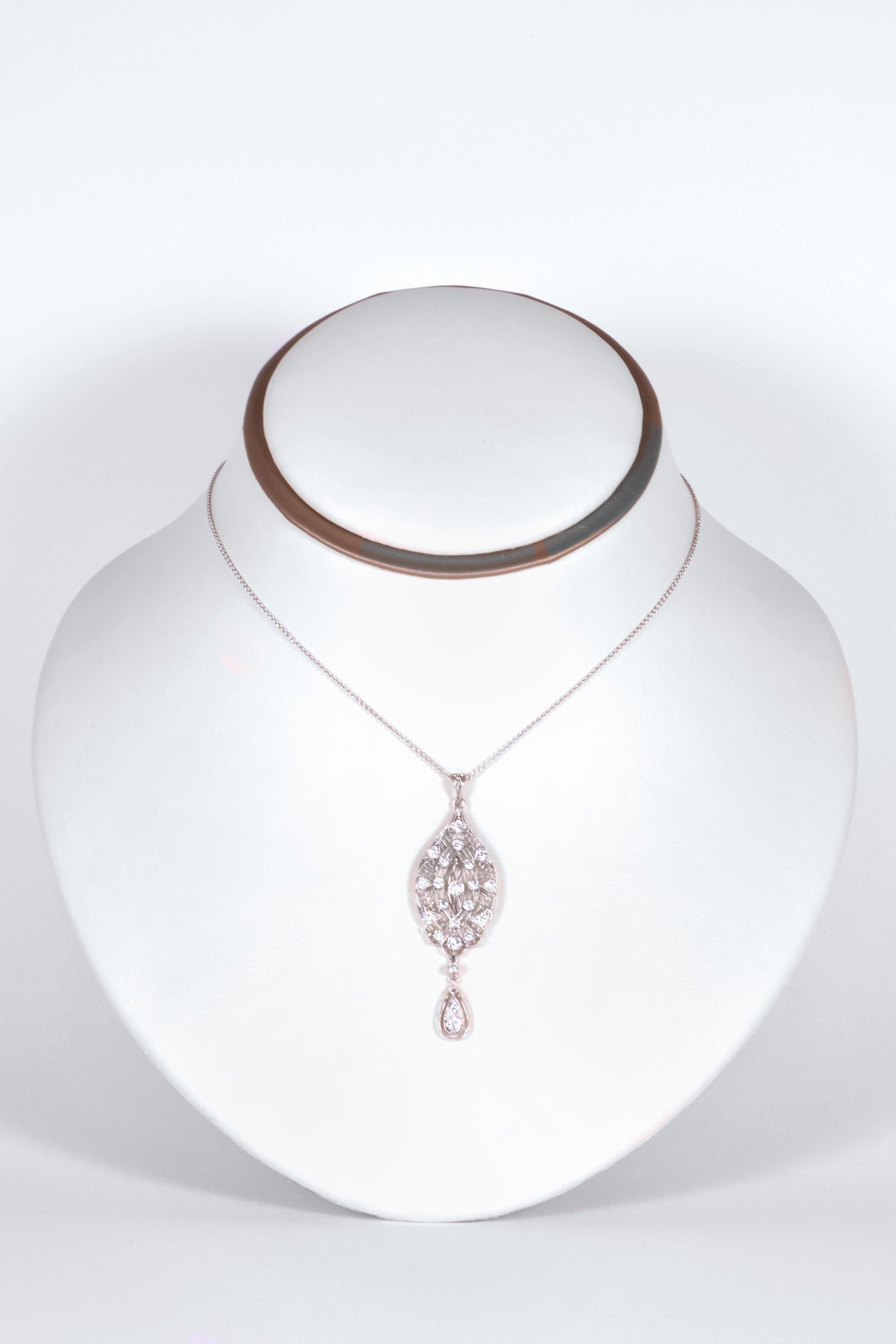 Antique Necklace - Antique Edwardian Platinum & 14k White Gold Diamond Necklace Platinum & 14k White Gold 22 European Cut Diamonds =1.50cts/ VVS-VS/F-G Pendant measures just under 3/4" wide and 2.25" tall at the center New 14k white gold chain measures 18" long with a jump loop at 16"