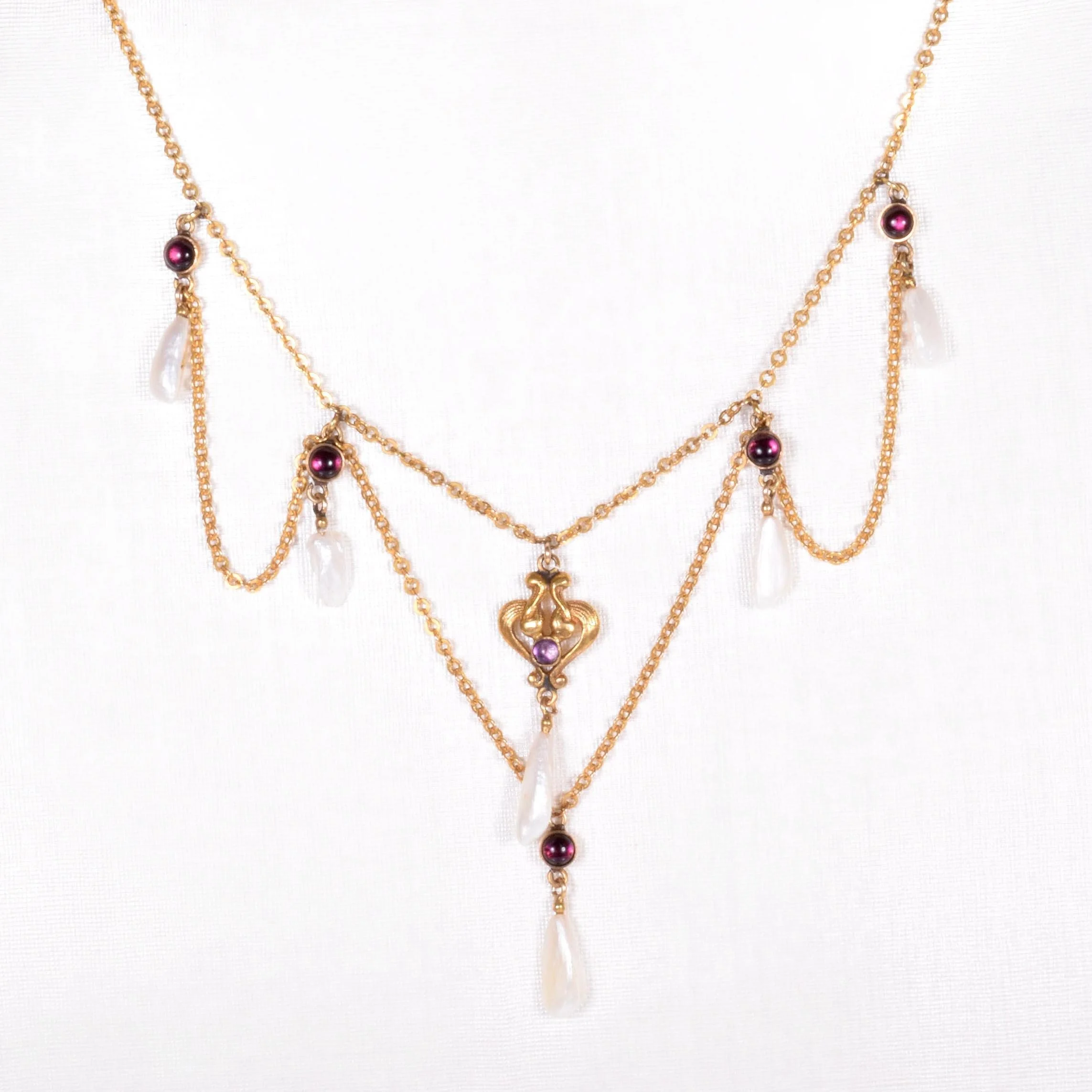 Antique Necklace - Antique Victorian 14k Gold Amethyst & Natural Pearl Lavalier Necklace Late 1800's 14k Yellow Gold Amethyst & Natural Fresh Water Pearls Necklace measures 16.75" long.