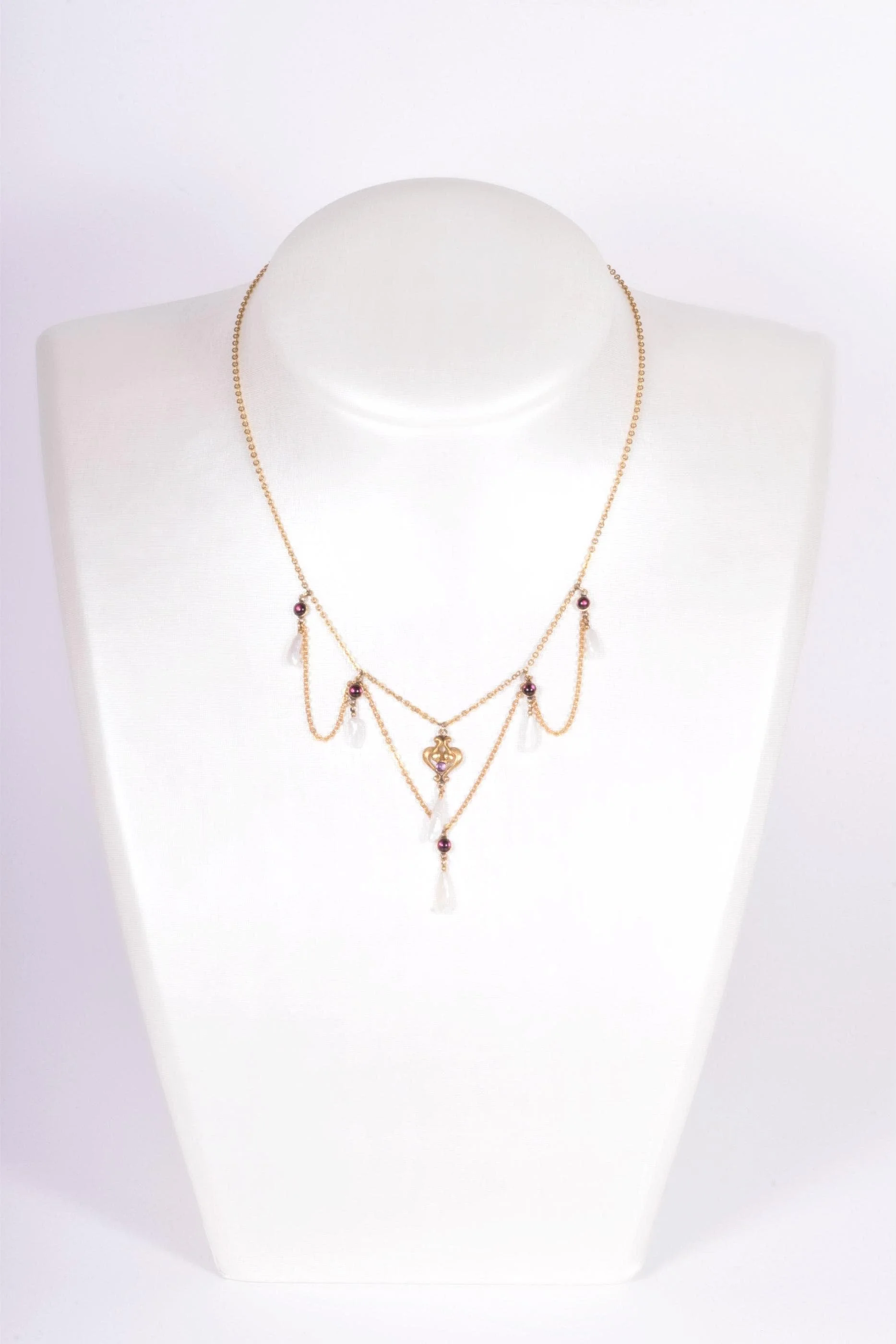 Antique Necklace - Antique Victorian 14k Gold Amethyst & Natural Pearl Lavalier Necklace Late 1800's 14k Yellow Gold Amethyst & Natural Fresh Water Pearls Necklace measures 16.75" long.