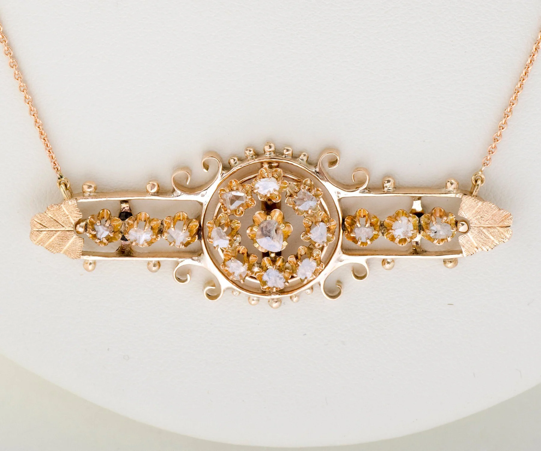 Antique Necklace - Antique Victorian 14k Rose Gold Rose Cut Diamond Conversion Necklace