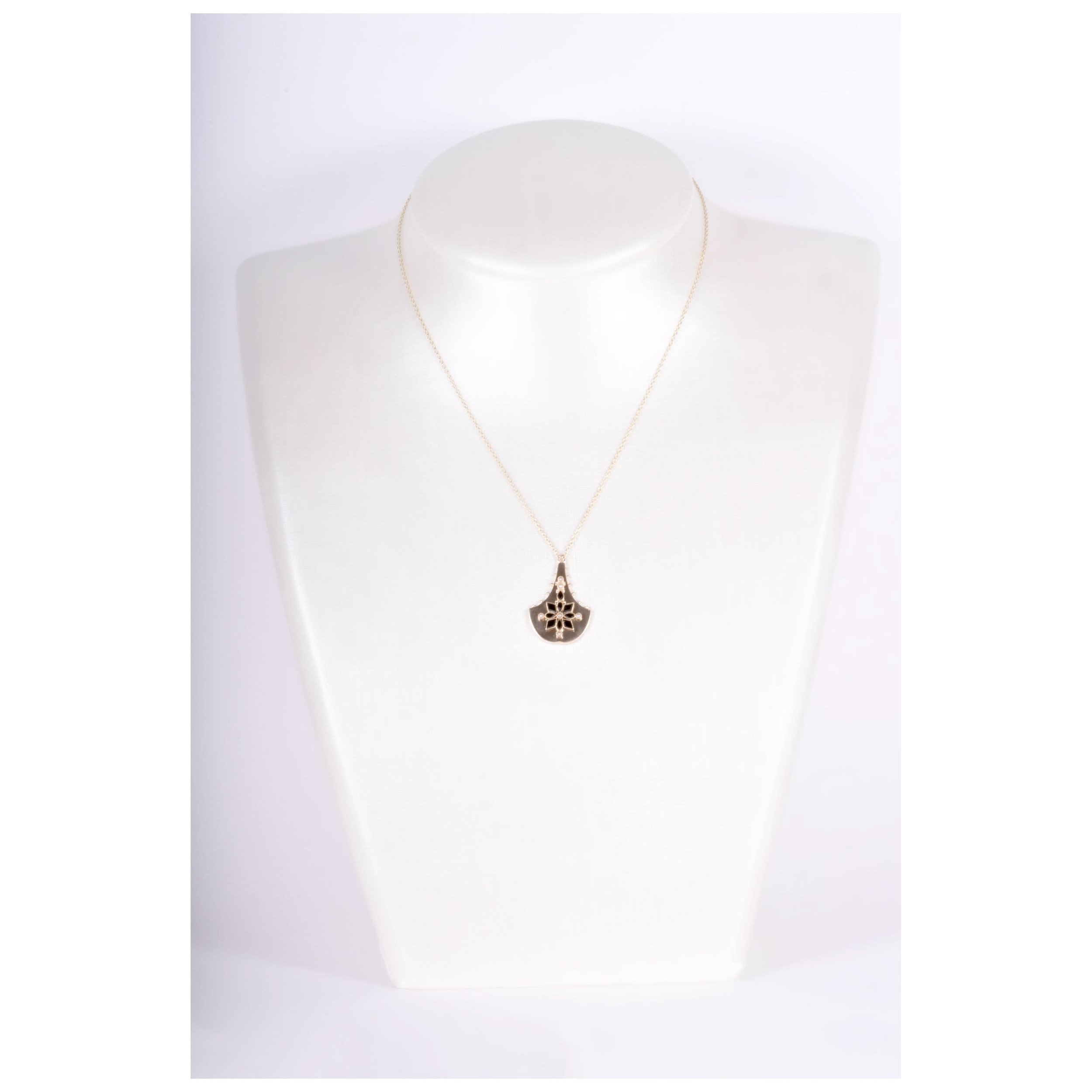 From the late 1800's this captivating , ornate piece is an exquisite example of Queen Victoria's taste. Striking black onyx and seed pearls against a bright and beaming 14k yellow gold backdrop. This antique treasure was converted in our shop into the pendant you see here...just imagine the life it has lived! The perfect "new" antique piece to add to your already eclectic jewelry collection!
