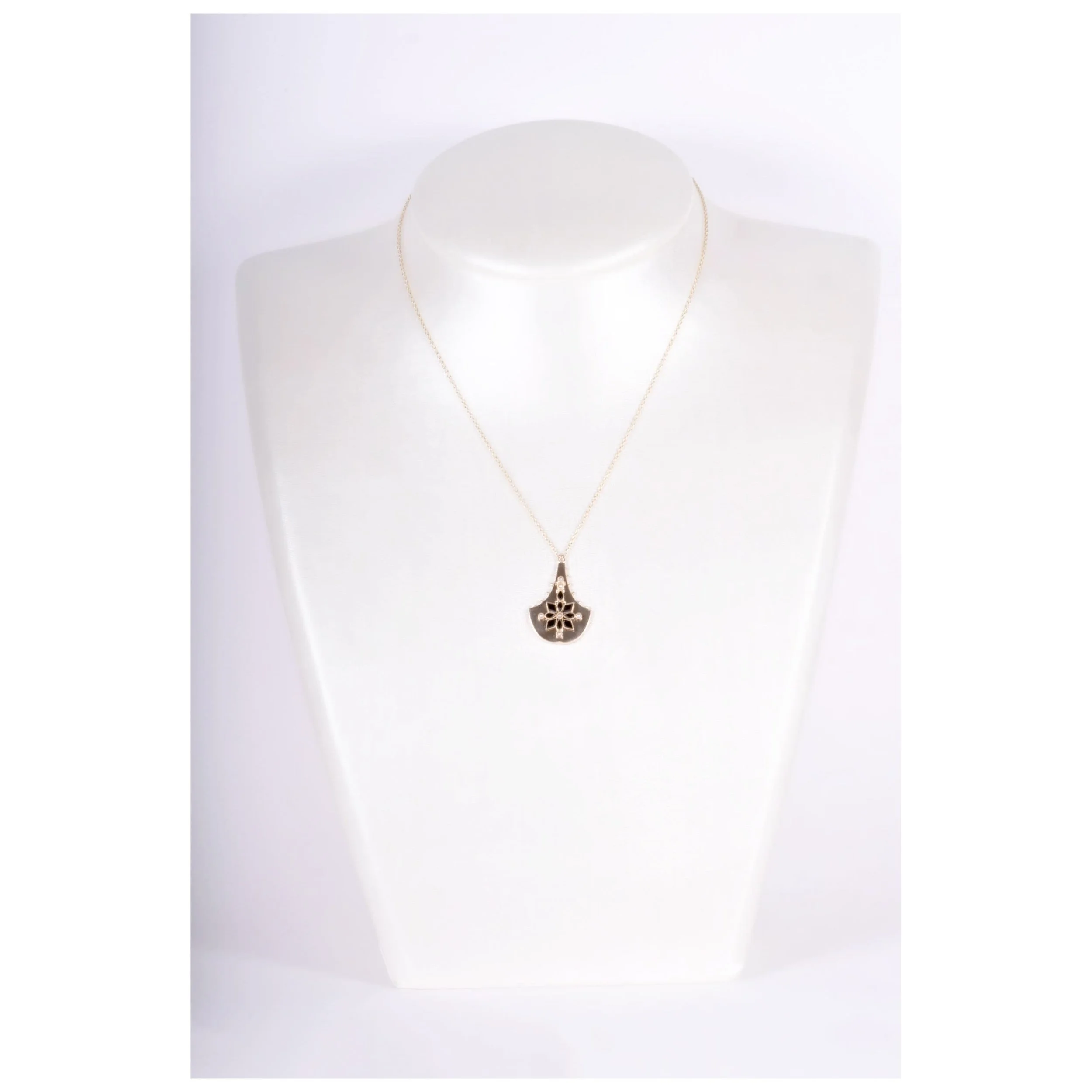 From the late 1800's this captivating , ornate piece is an exquisite example of Queen Victoria's taste. Striking black onyx and seed pearls against a bright and beaming 14k yellow gold backdrop. This antique treasure was converted in our shop into the pendant you see here...just imagine the life it has lived! The perfect "new" antique piece to add to your already eclectic jewelry collection!