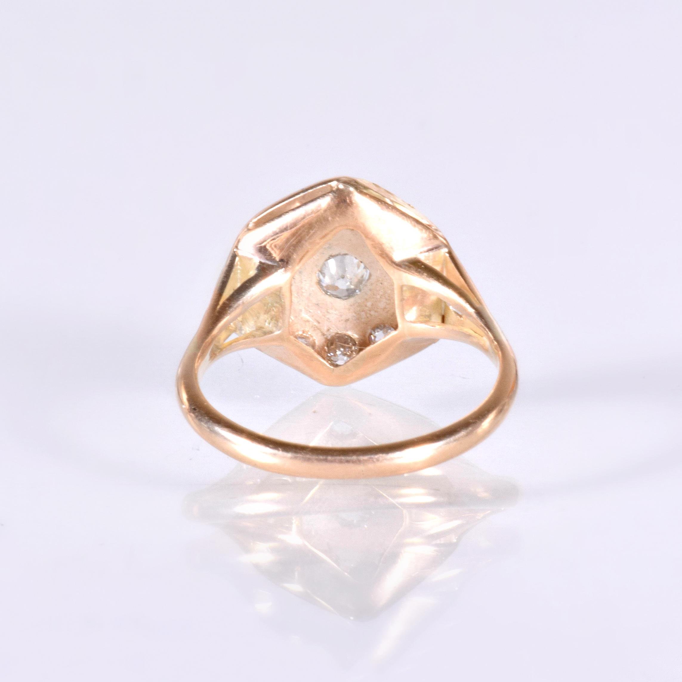 Antique Ring - Antique 10k Yellow Gold Mine Cut Diamond Cluster Engagement Ring 10k Yellow Gold 15 Mine Cut Diamonds =1.05cts VS2-I1/G-K Ring Size 5.5 (sizable) Ring measures approximately 13.4mm wide at center, back of band is 1.9mm wide.
