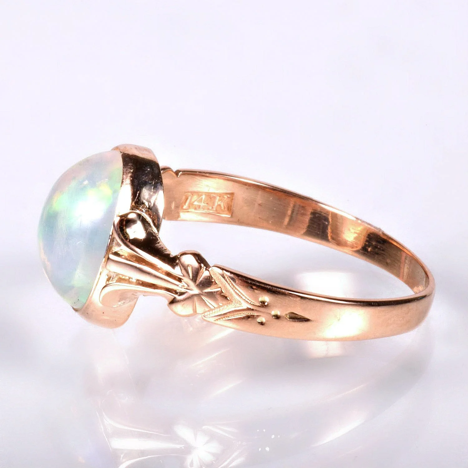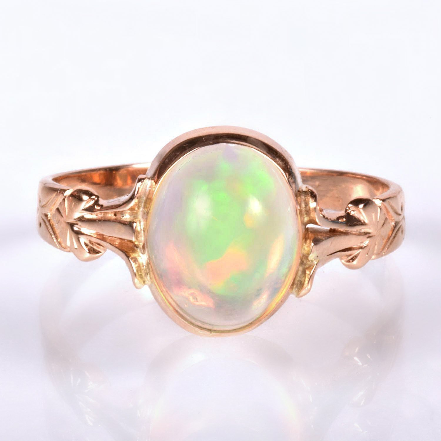 Antique Ring - Antique 14k Rose Gold 1.65ct Opal Ring