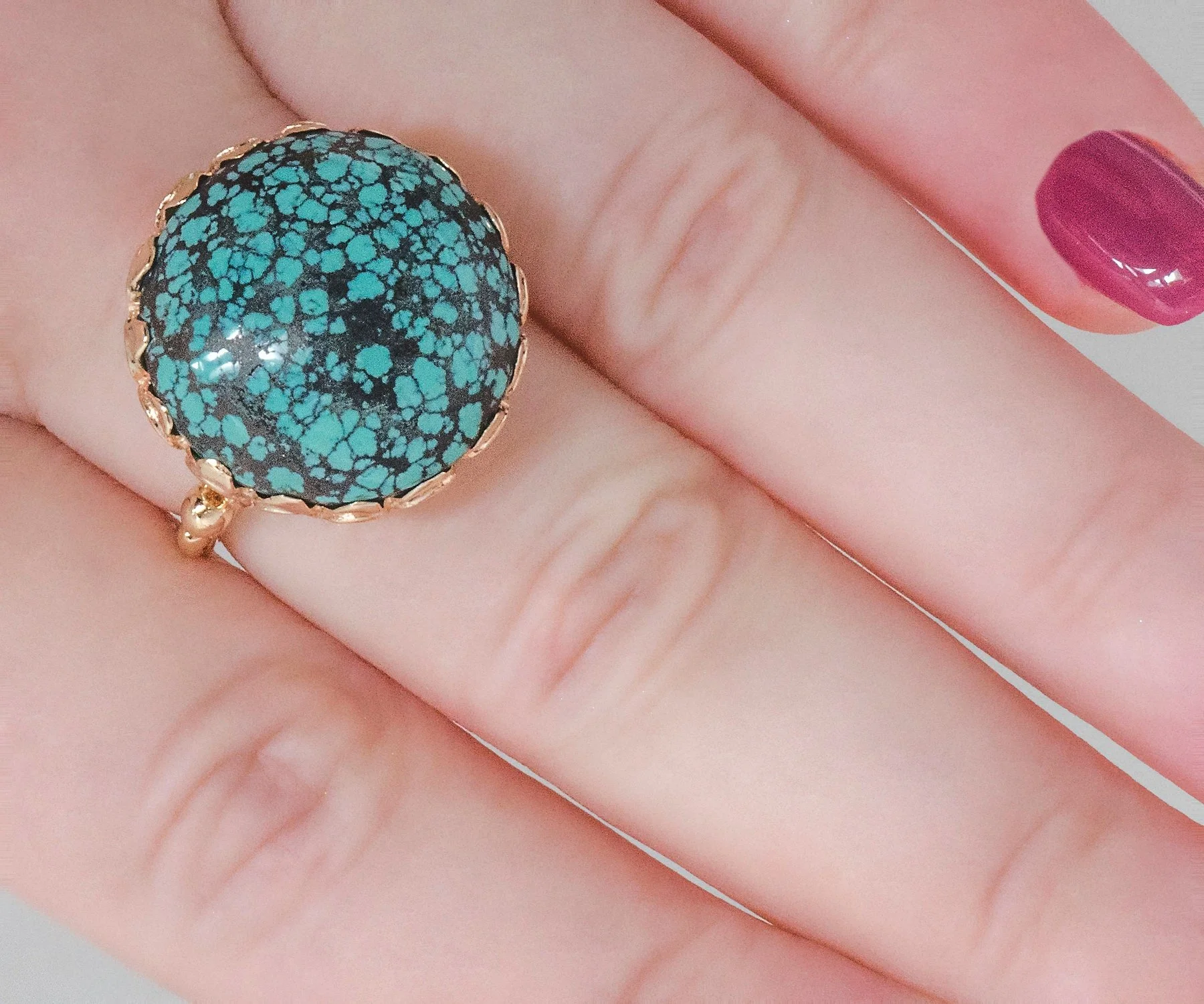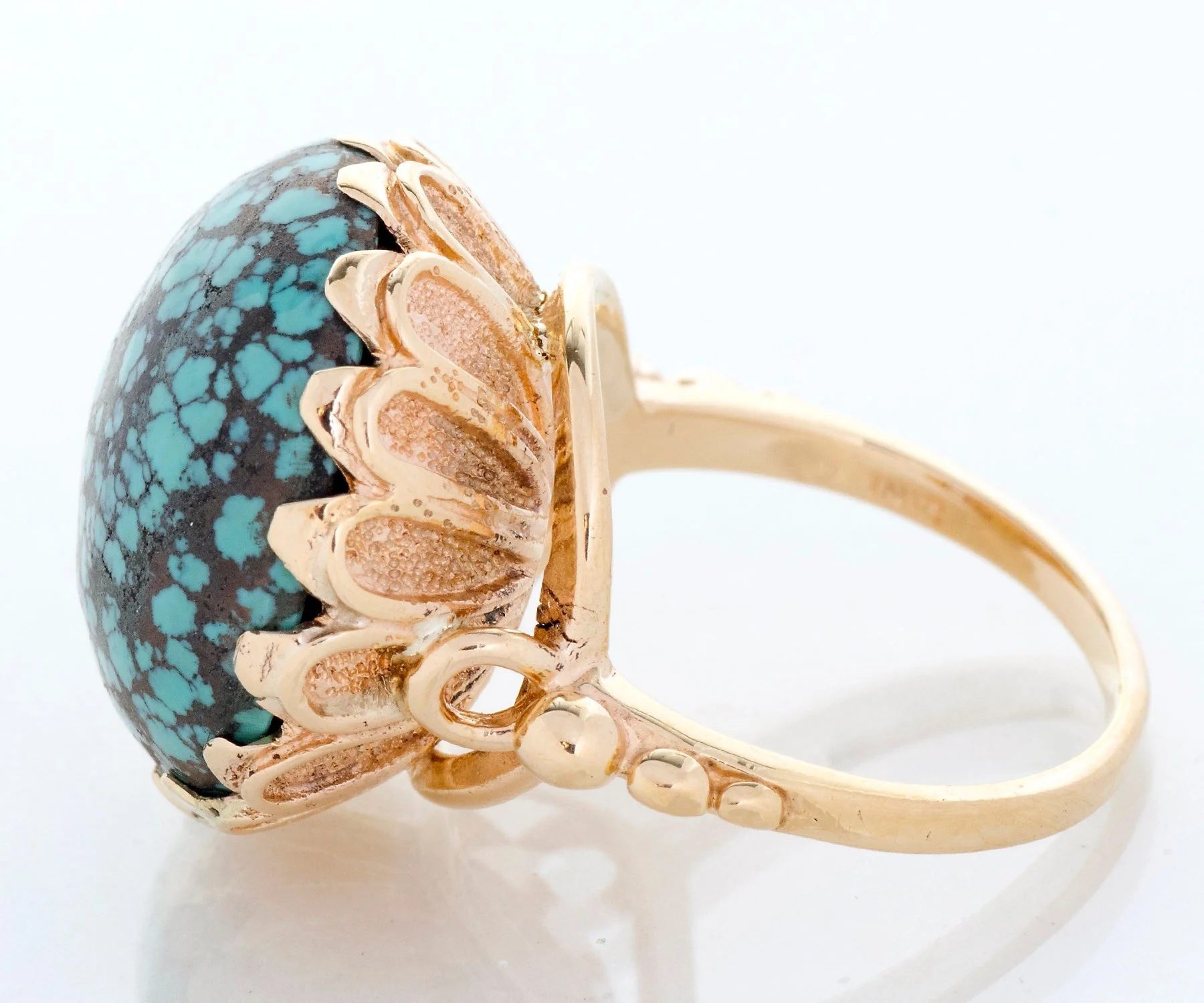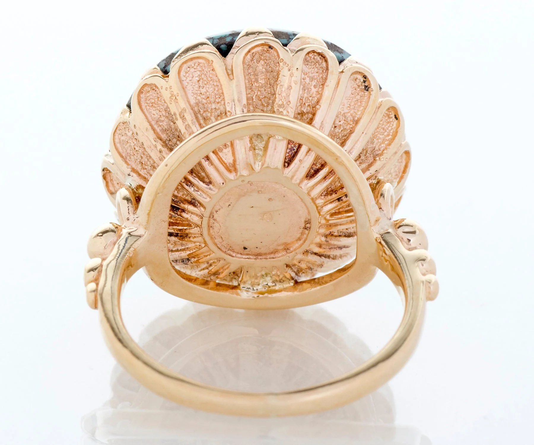 Antique Ring - Antique 14k Rose Gold Large Round Tuquoise Ring