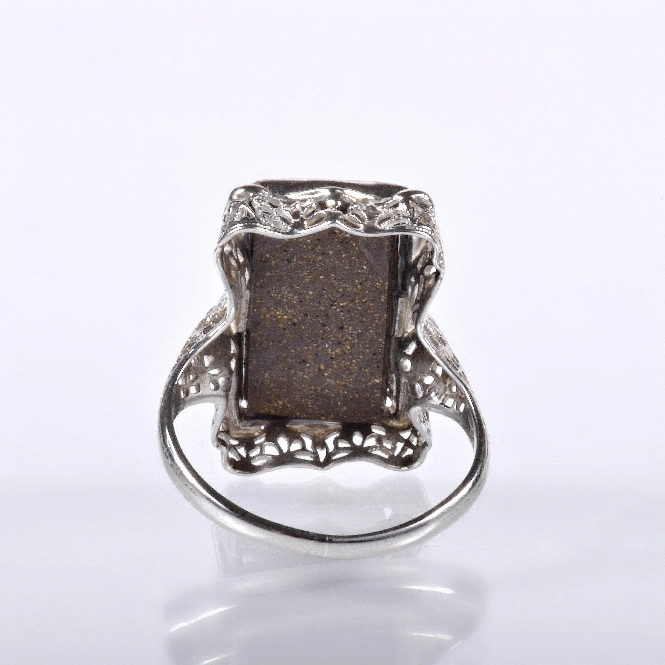 Antique Ring - Antique 14k White Gold 4.52ct Boulder Opal Ring