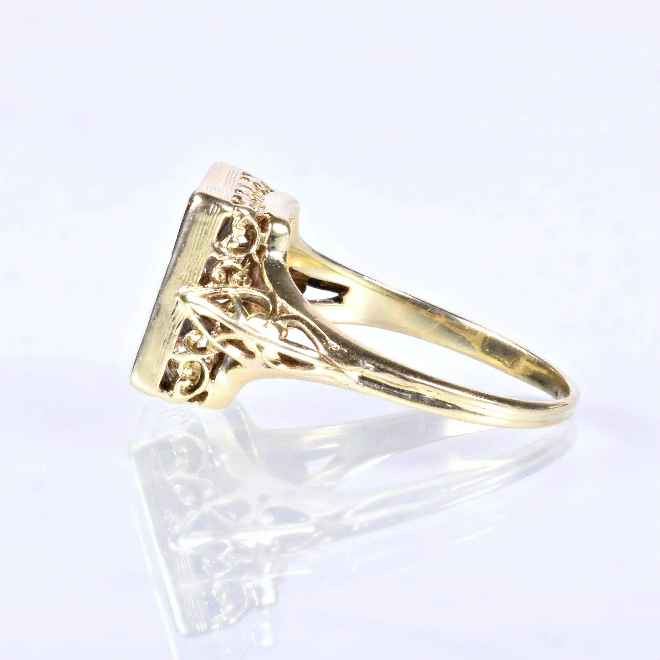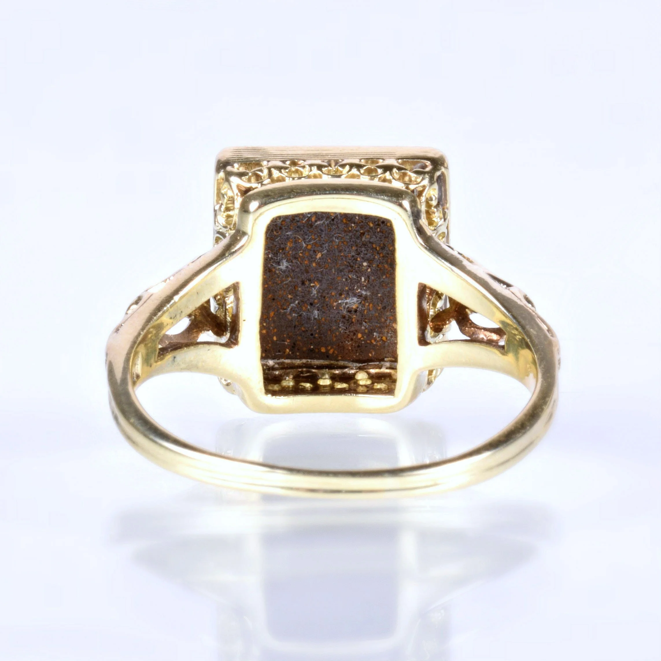 Antique Ring - Antique 15k Yellow Gold Boulder Opal Filigree Ring