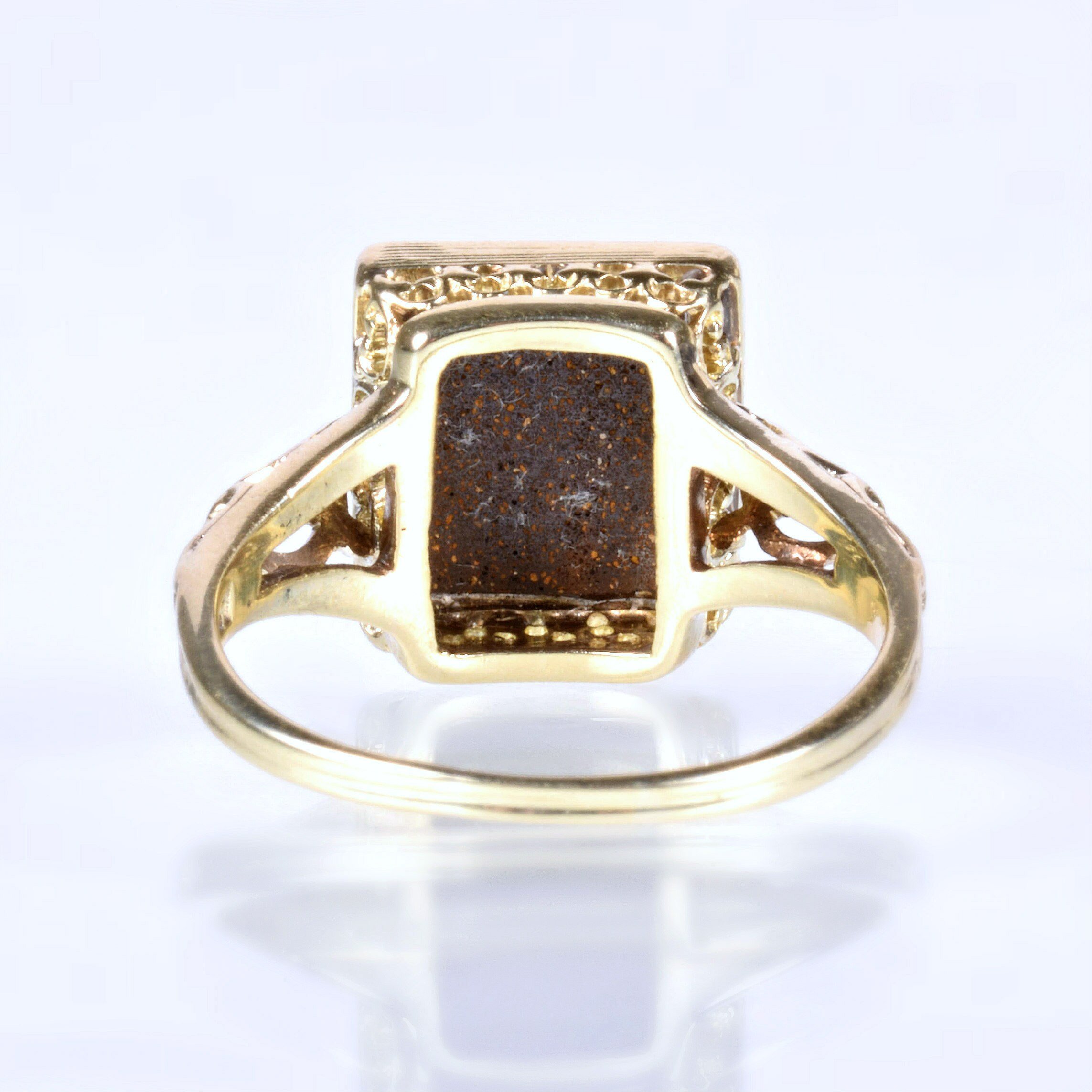 Antique Ring - Antique 15k Yellow Gold Boulder Opal Filigree Ring