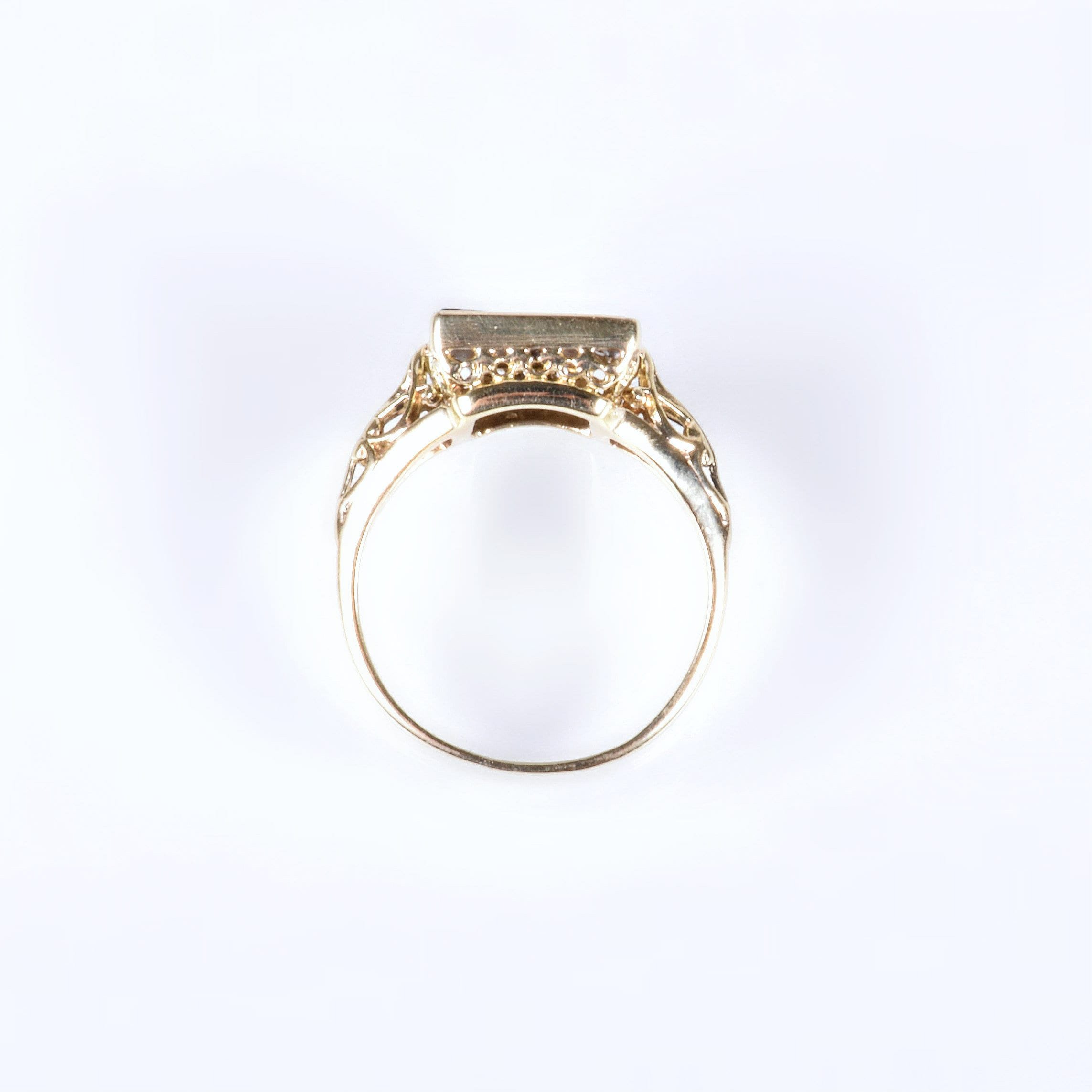 Antique Ring - Antique 15k Yellow Gold Boulder Opal Filigree Ring 1910's 15k Yellow Gold Boulder Opal Ring Size 7.25 Ring measures approximately 11.8mm tall at center, back of band is 1.8mm wide.