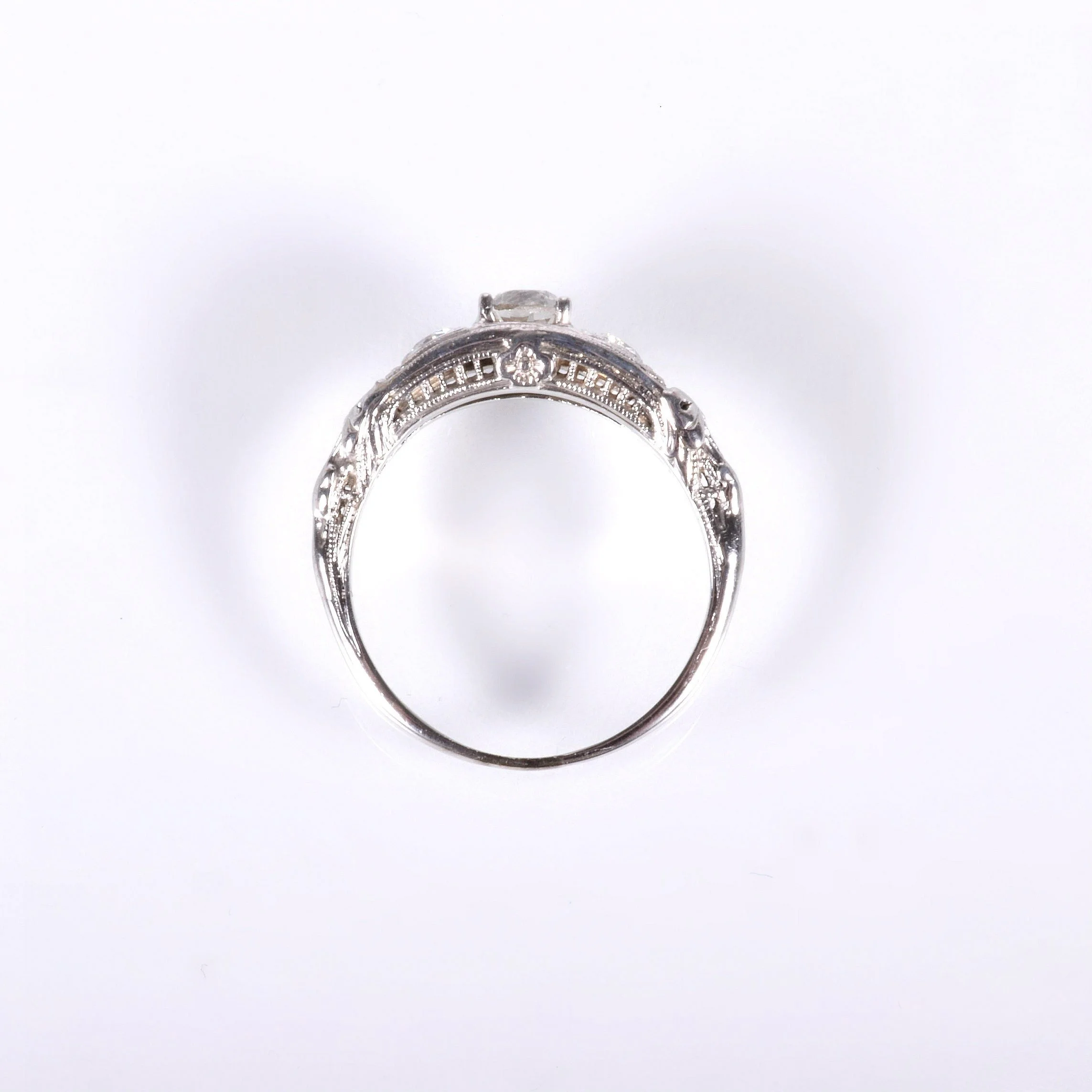 Antique Ring - Antique 18k White Gold Three-Stone Diamond Filigree Ring