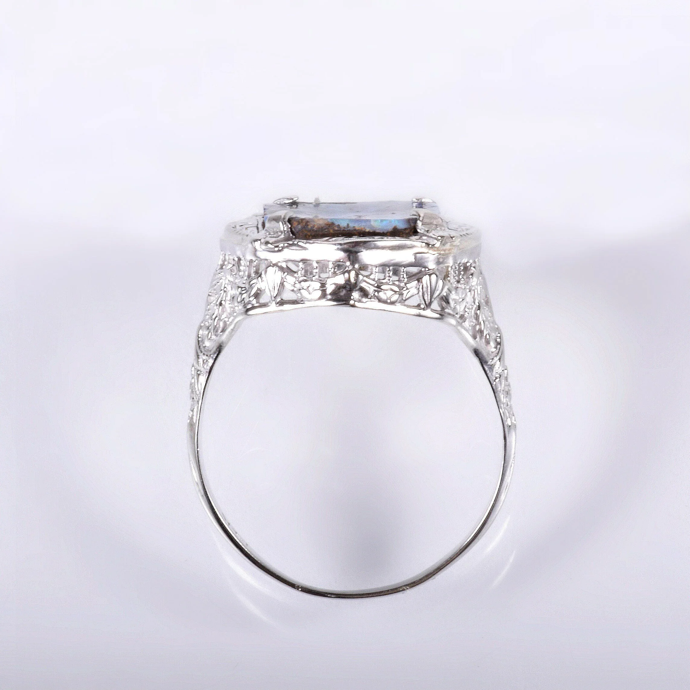 Antique Ring - Antique 1920's 14k White Gold 2.98ct Boulder Opal Ring