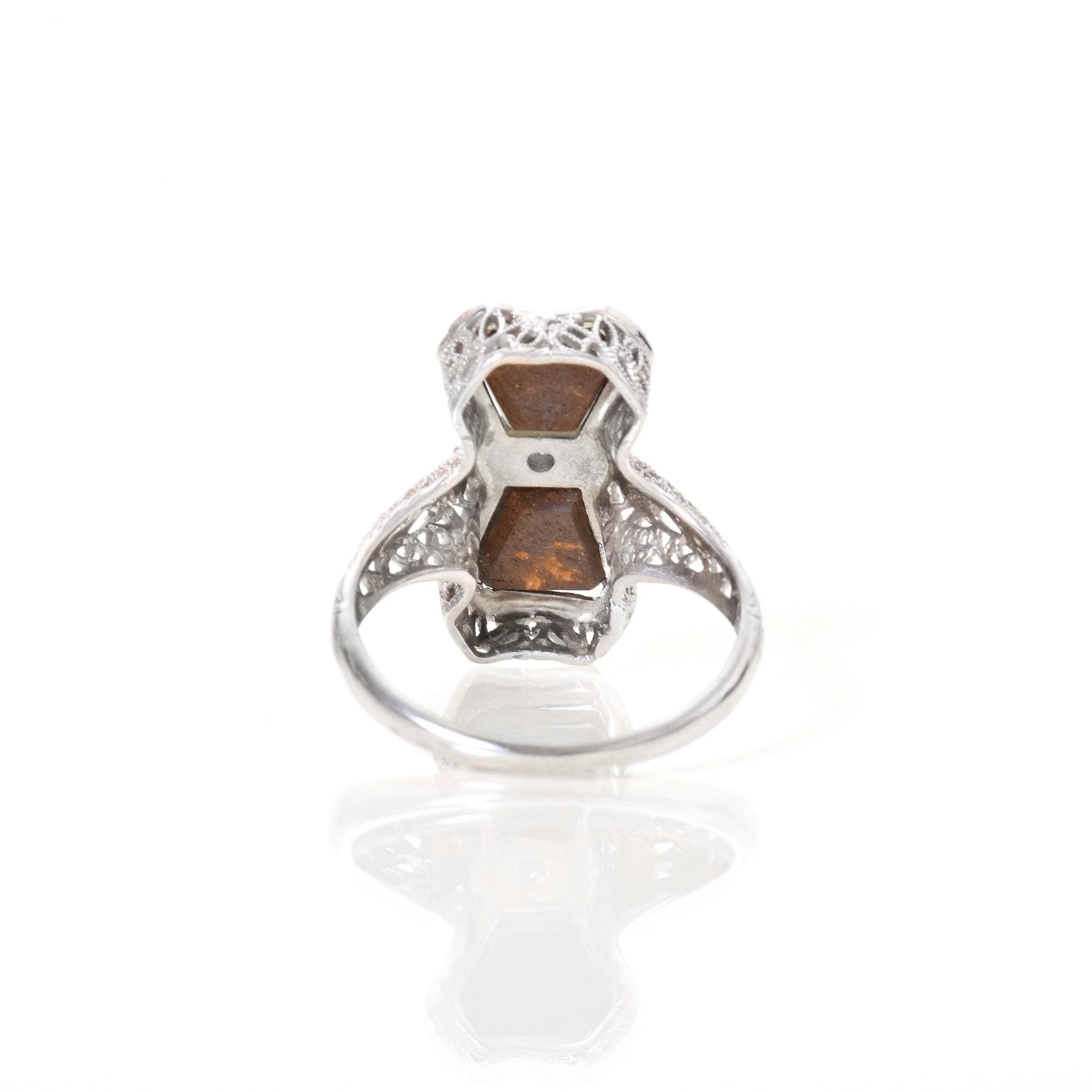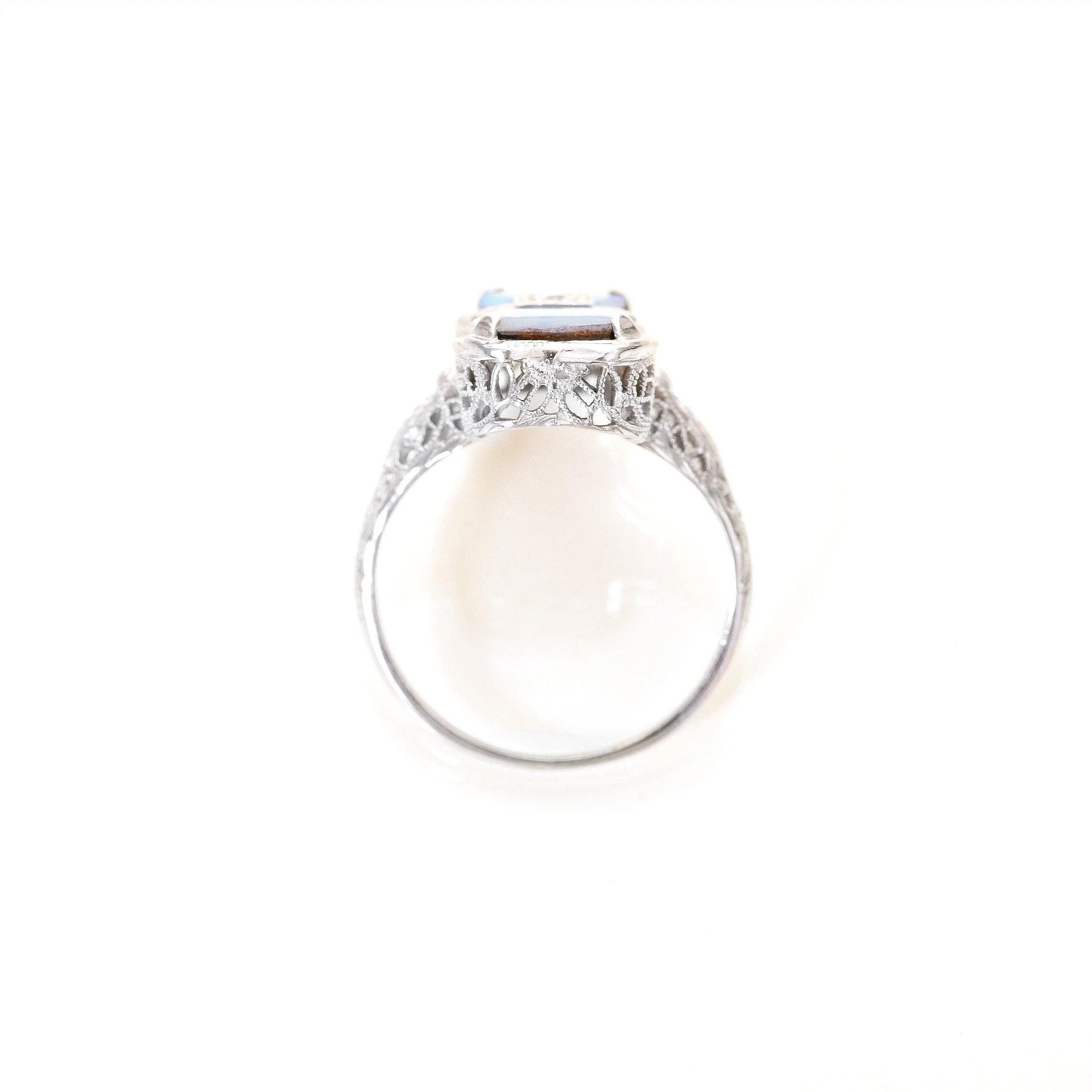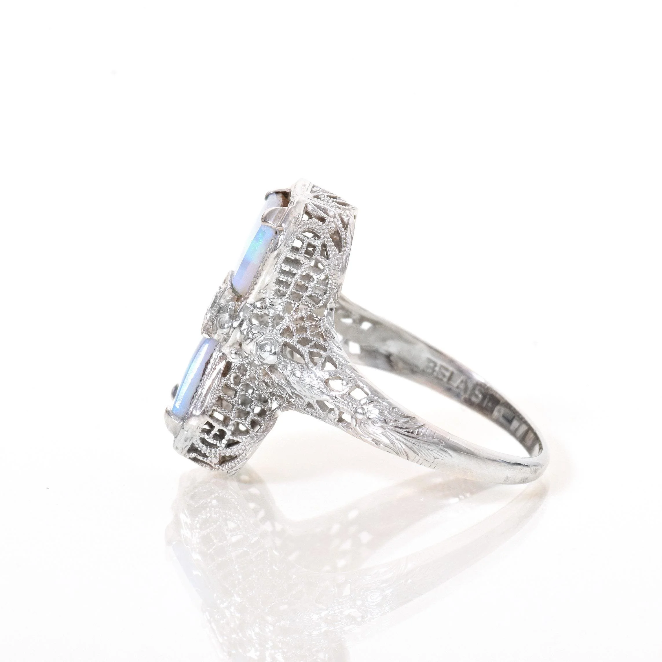 Antique Ring - Antique 1920's 14k White Gold Opal Filigree Belais Ring