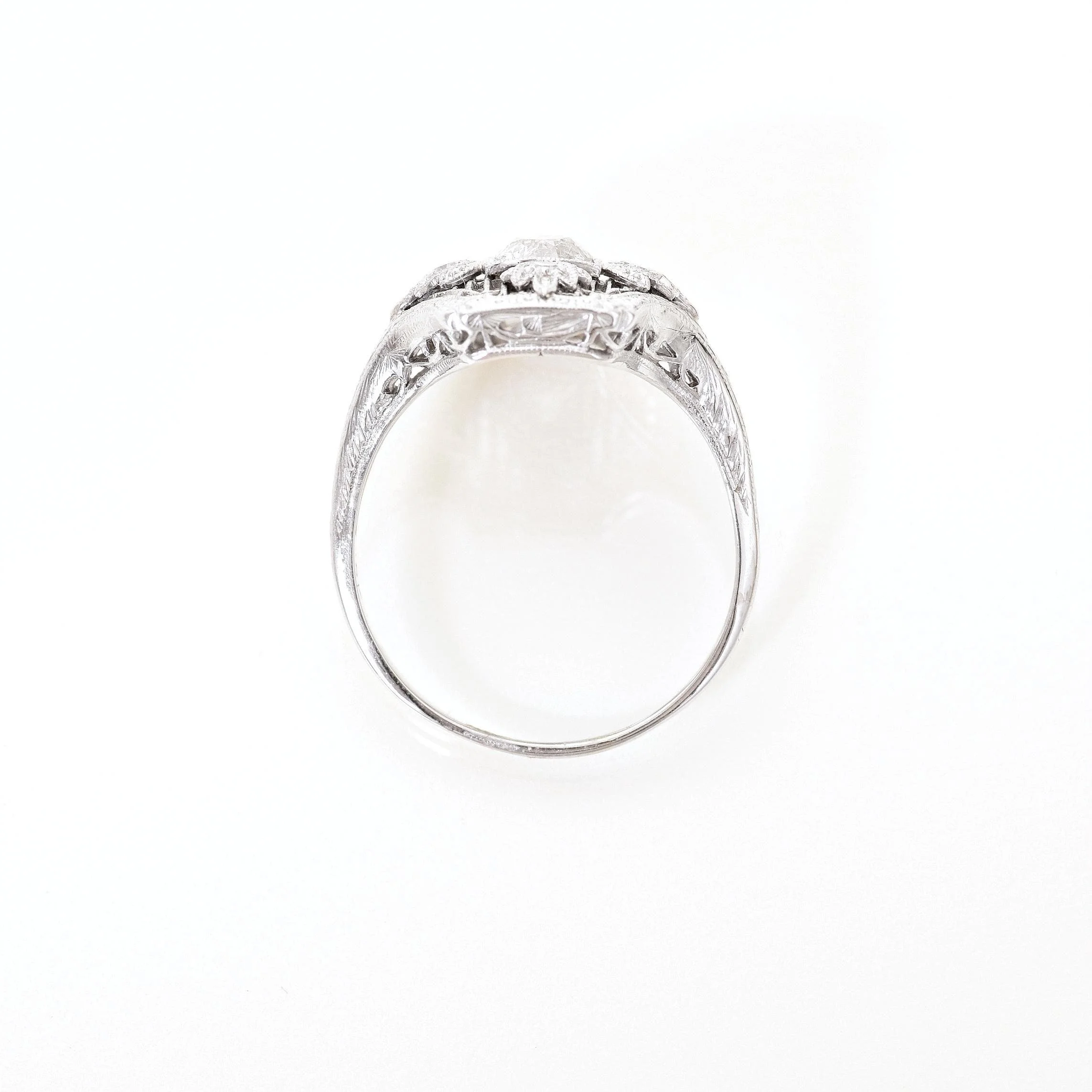 Antique Ring - Antique Art Deco 18k White Gold Multi-Diamond Jabel Ring