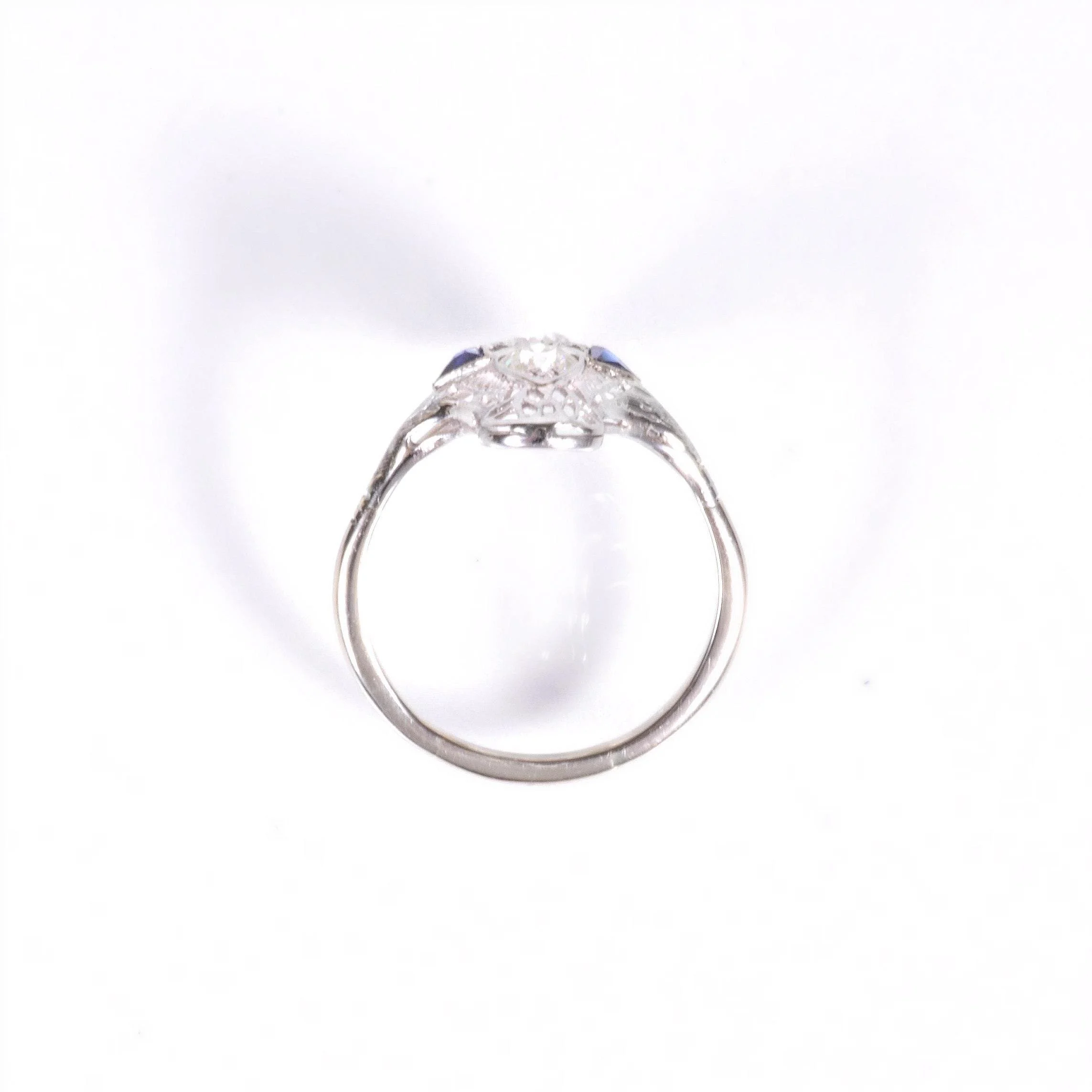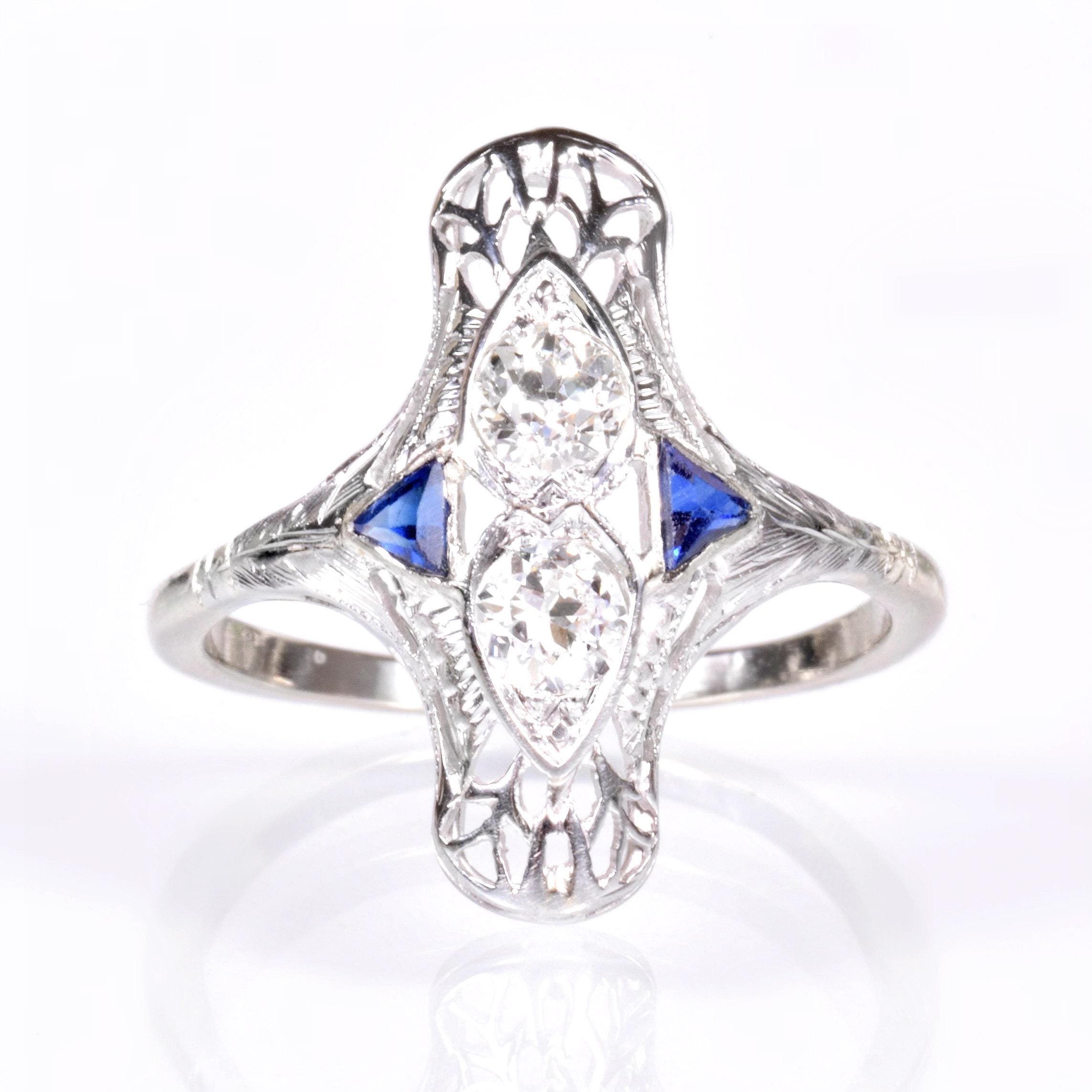 Antique Ring - Antique Art Deco White Gold Diamond & Sapphire Ring