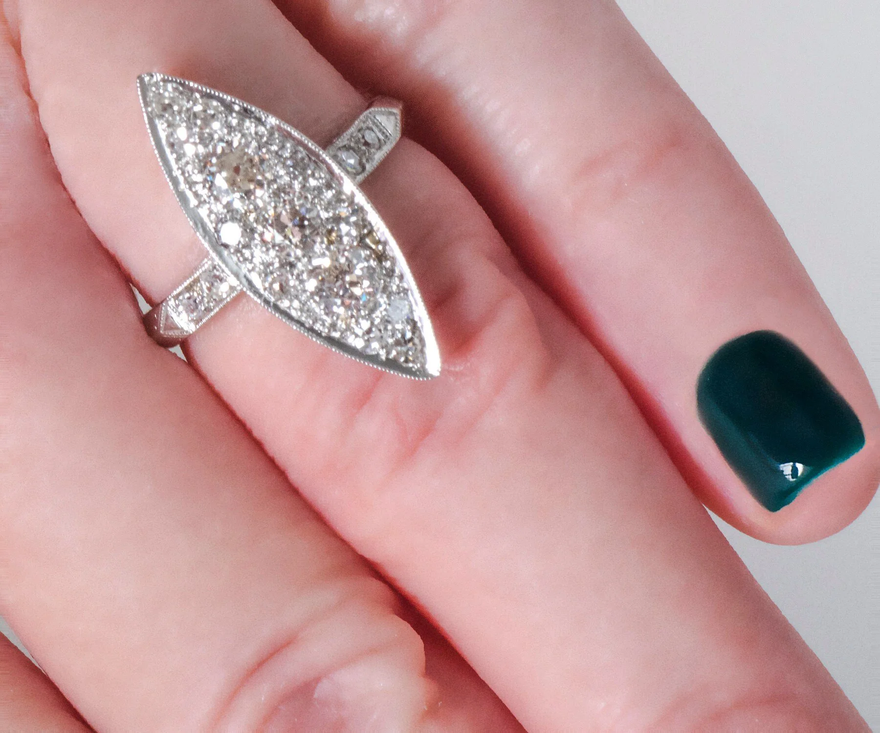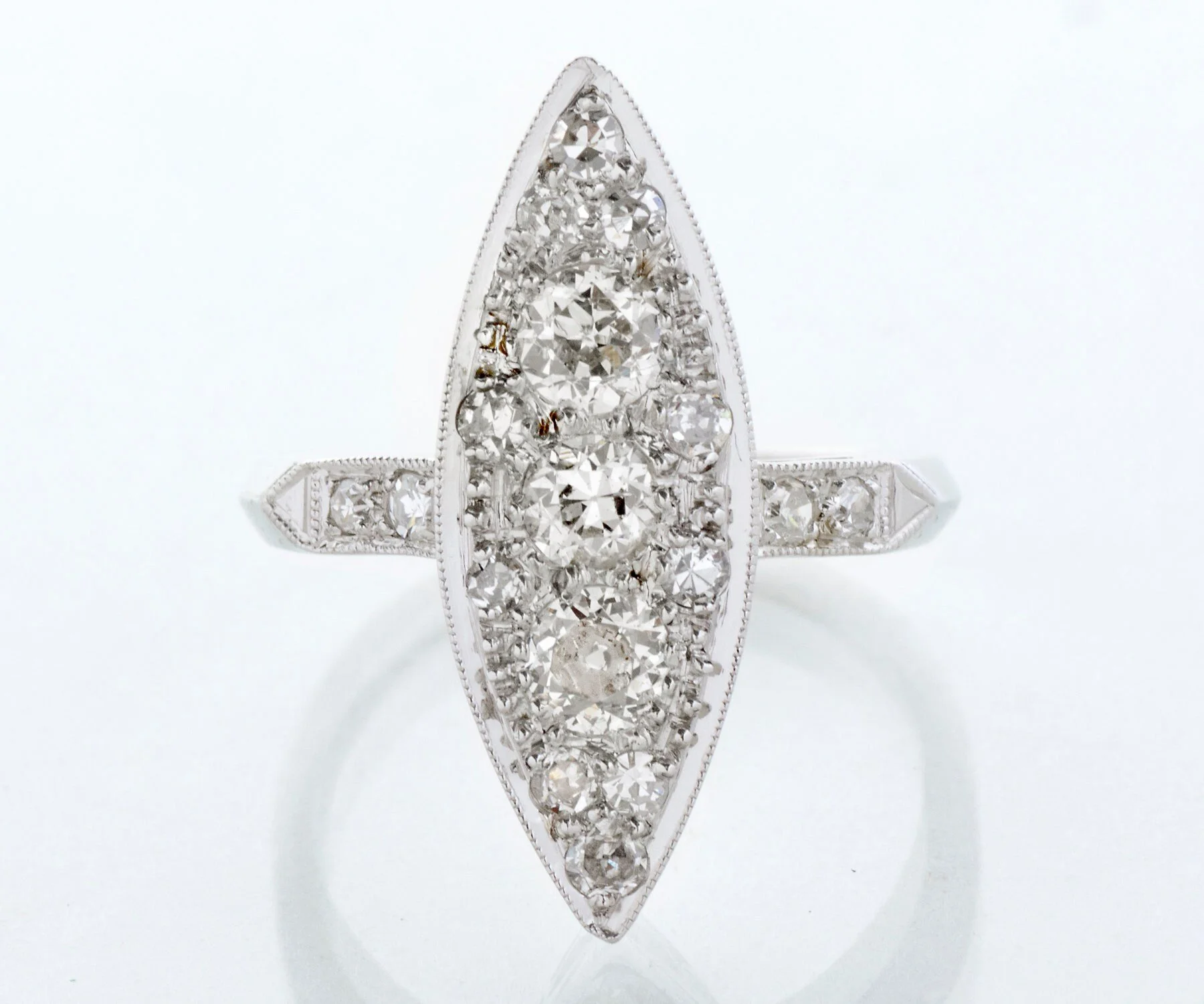 Antique Ring - Antique Platinum Art Deco Diamond Navette Ring