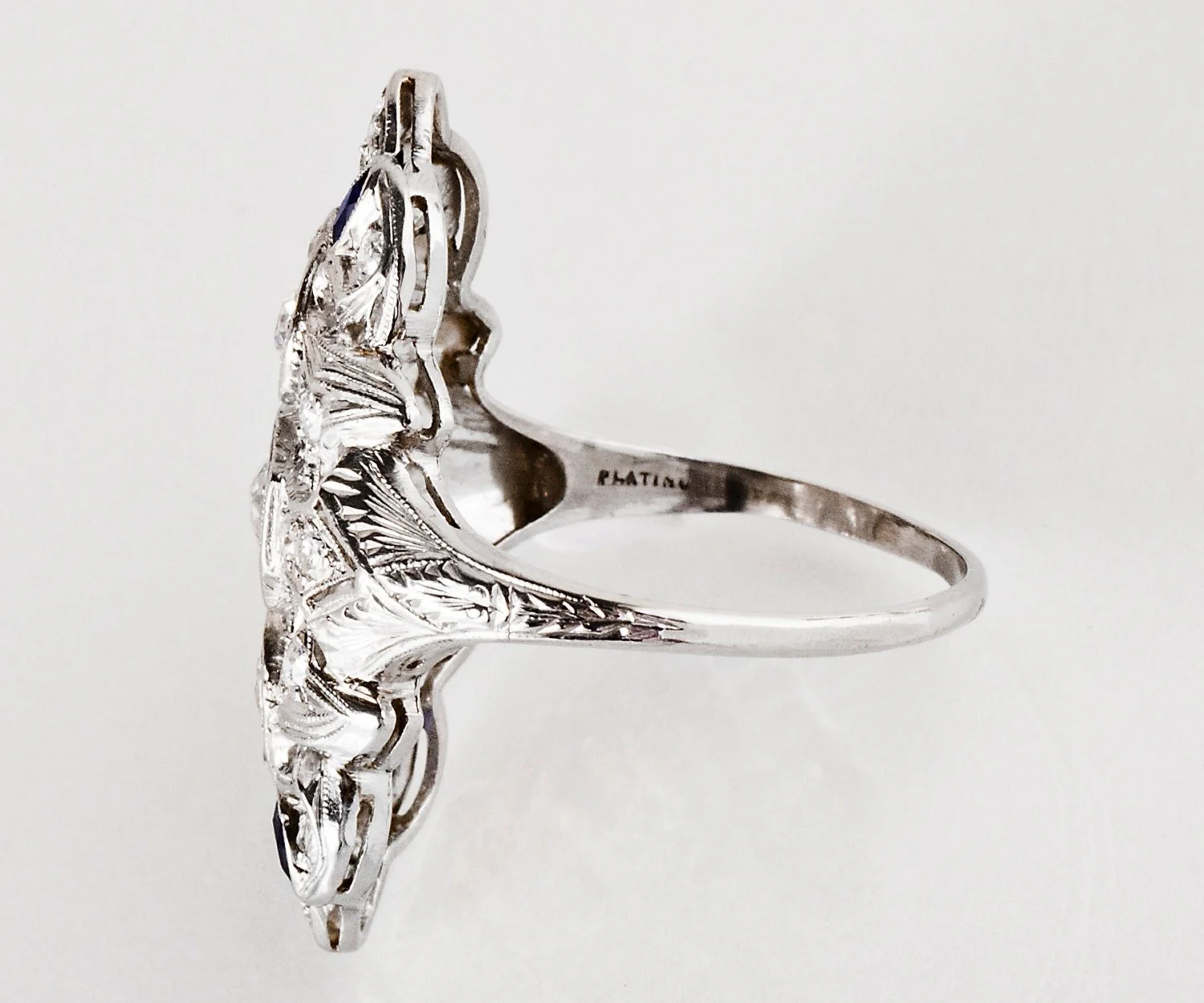 Antique Ring - Antique Platinum Diamond and Sapphire Filigree Ring