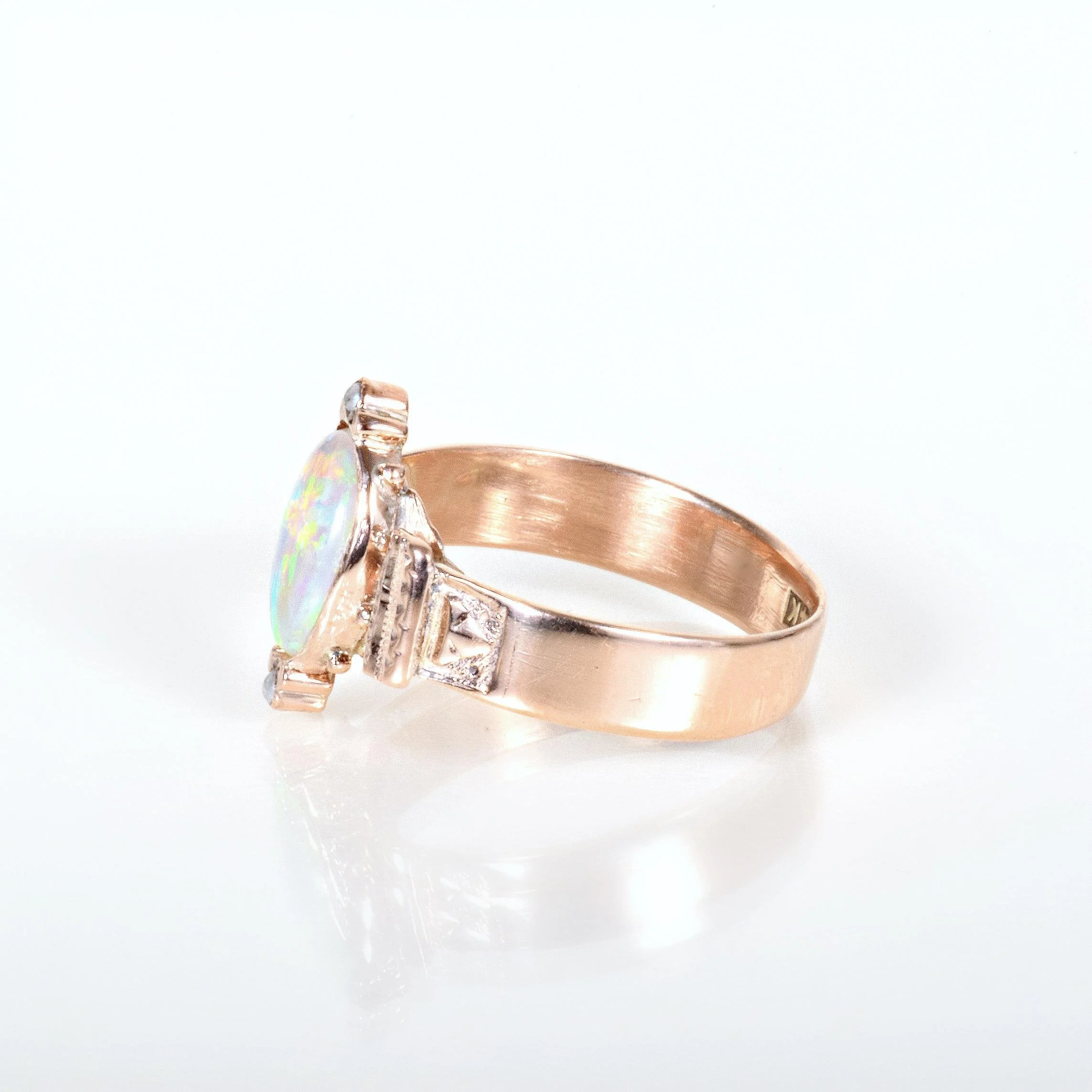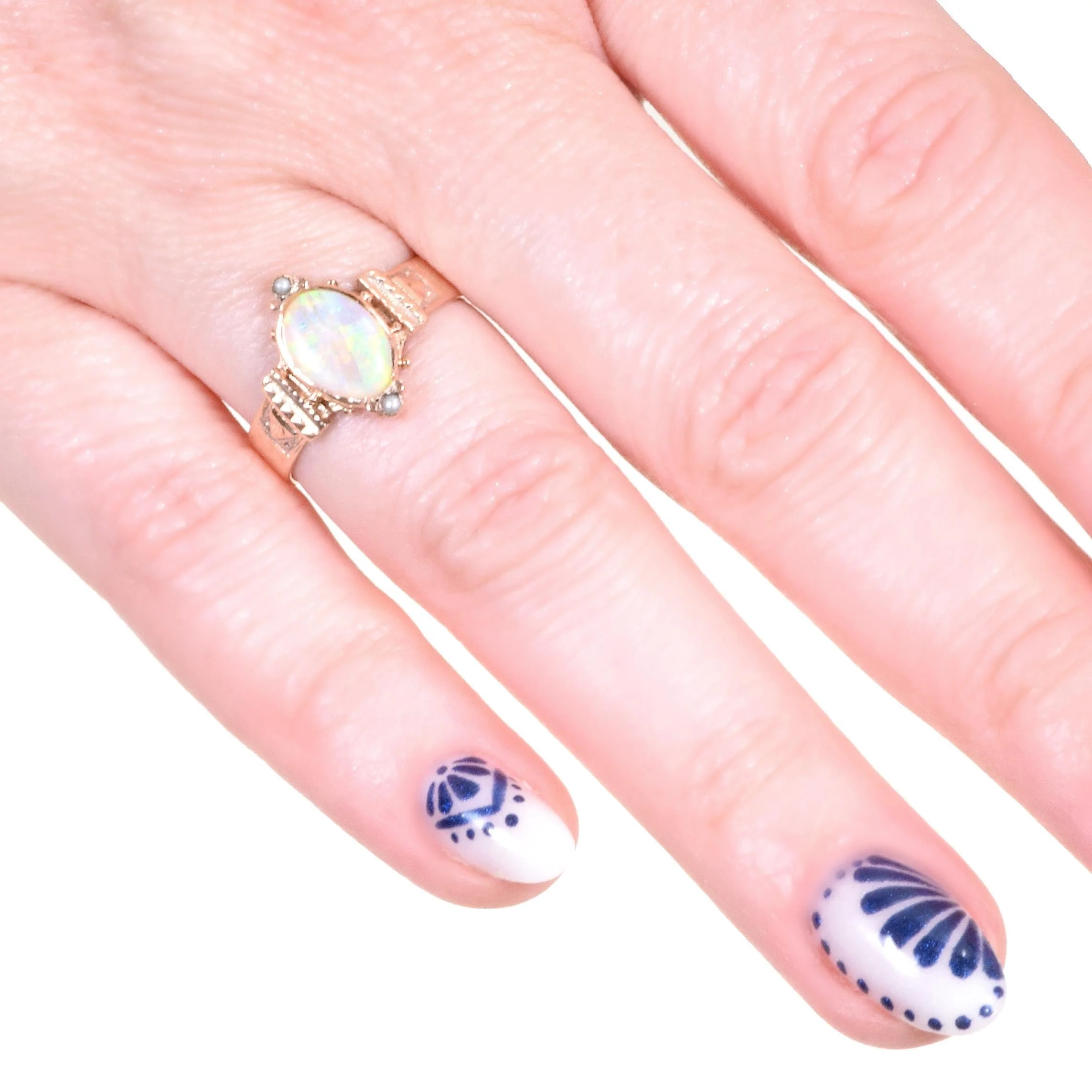 Antique Ring - Antique Victorian 14k Rose Gold Opal & Seed Pearl Ring