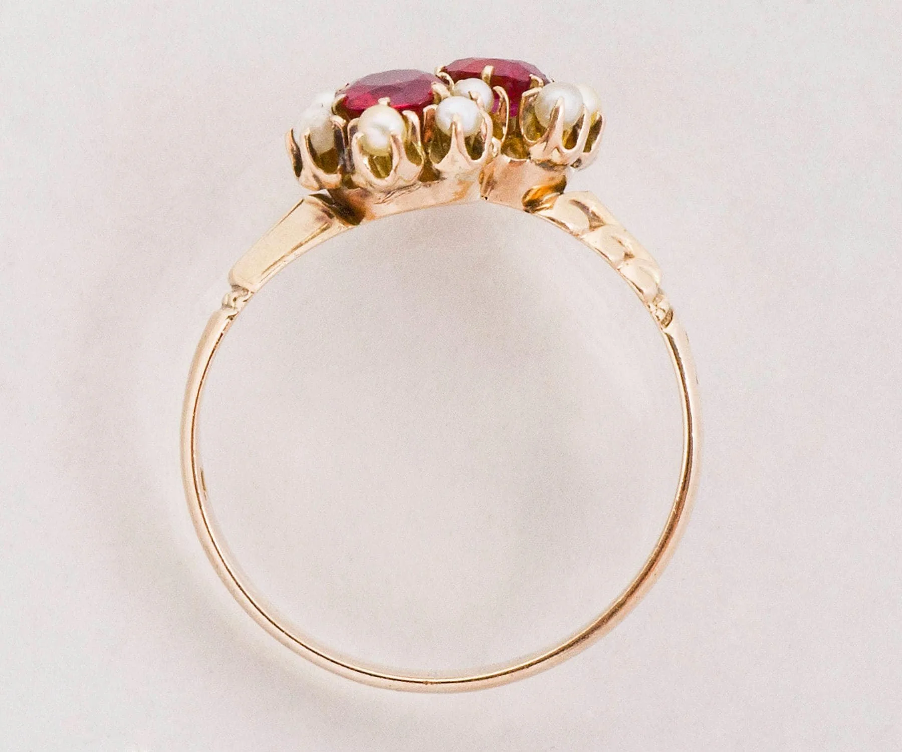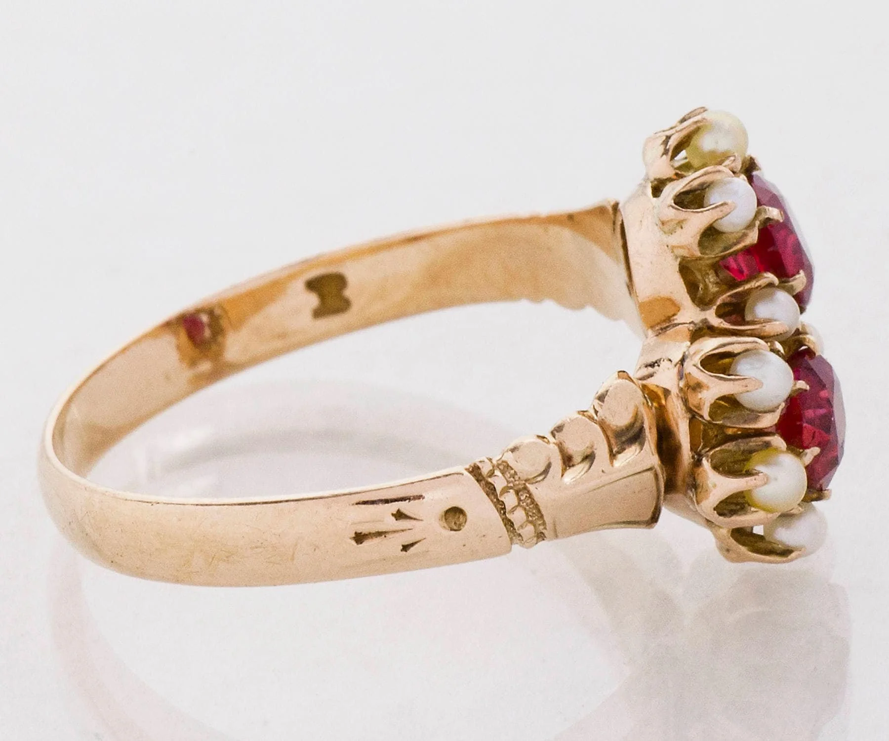 Antique Ring - Antique Victorian 14k Rose Gold Ruby & Seed Pearl Flower Toi-Et-Moi Ring