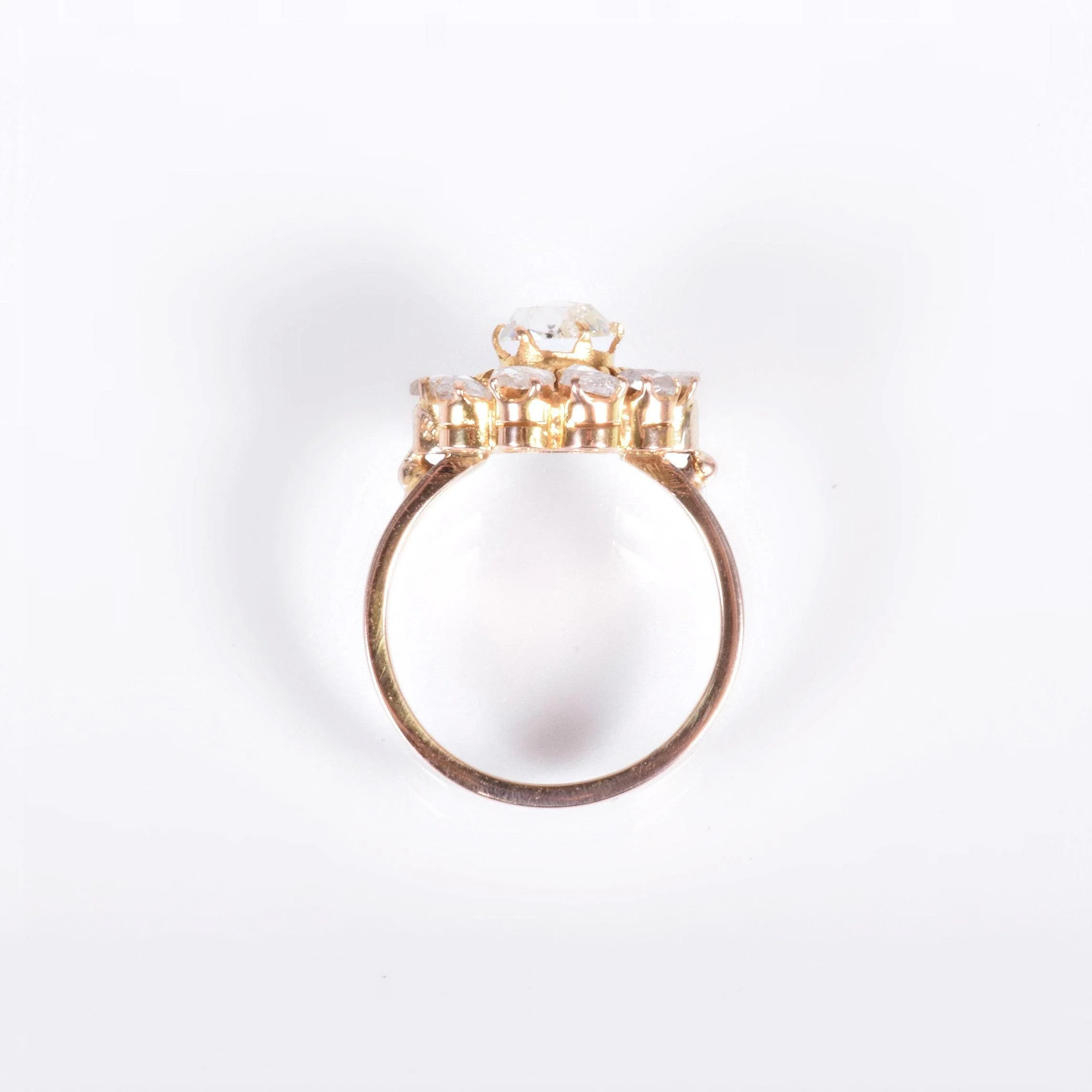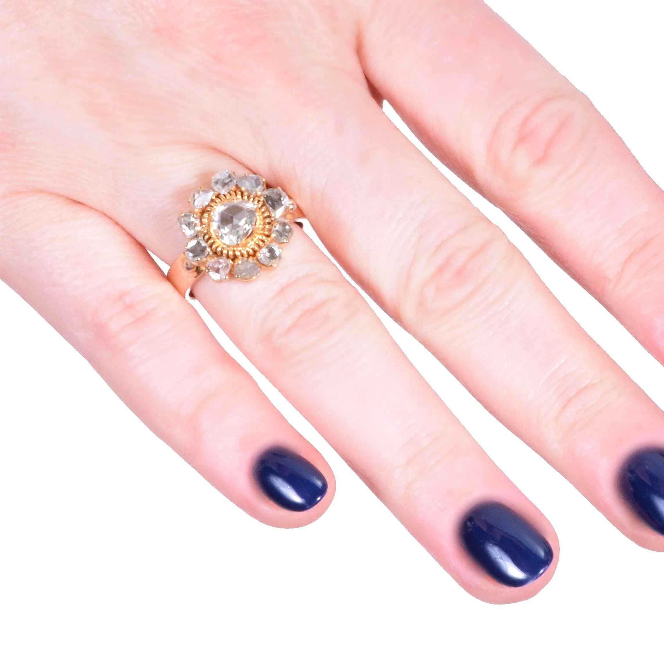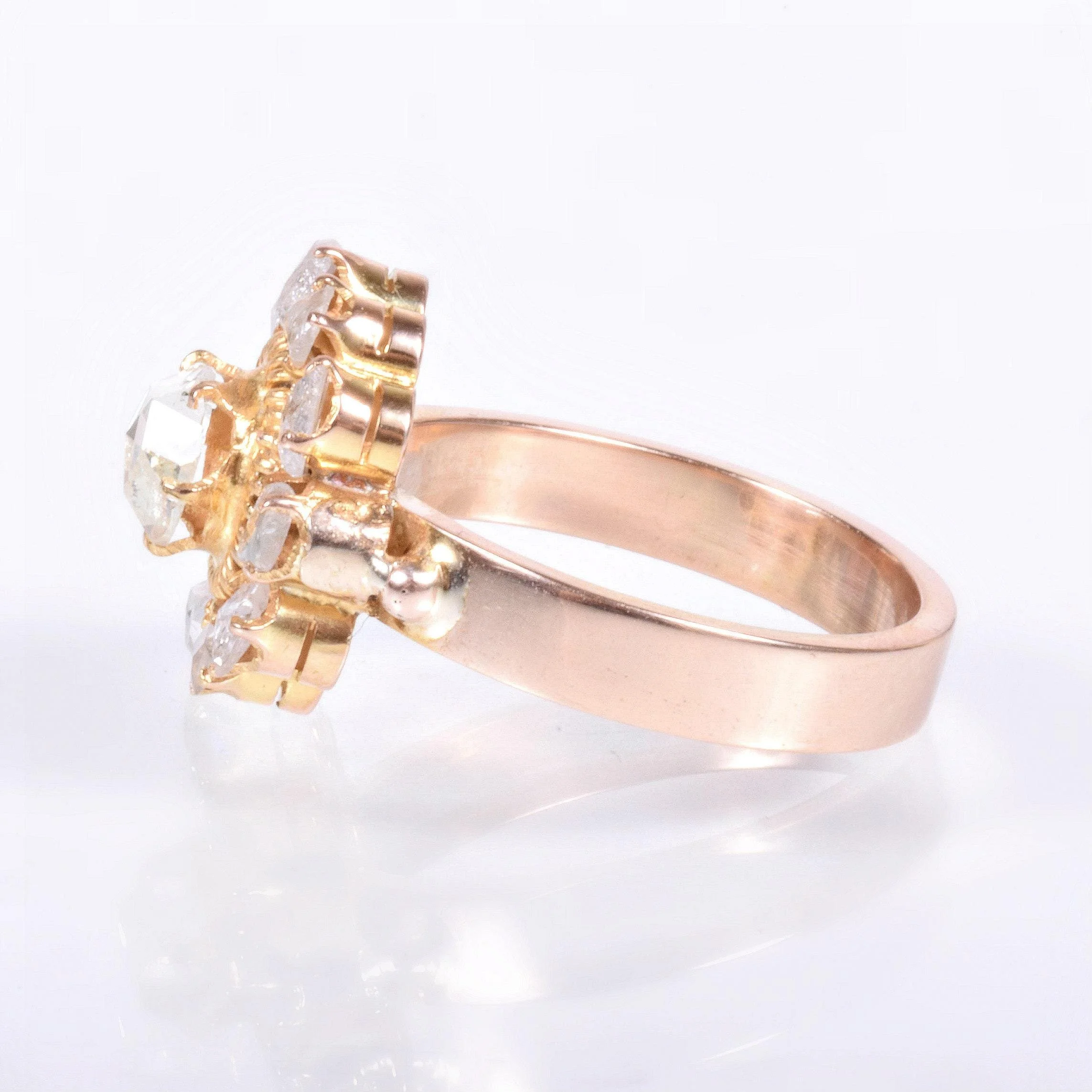 Antique Ring - Antique Victorian 18k Yellow Gold Rose Cut Diamond Flower Conversion Ring
