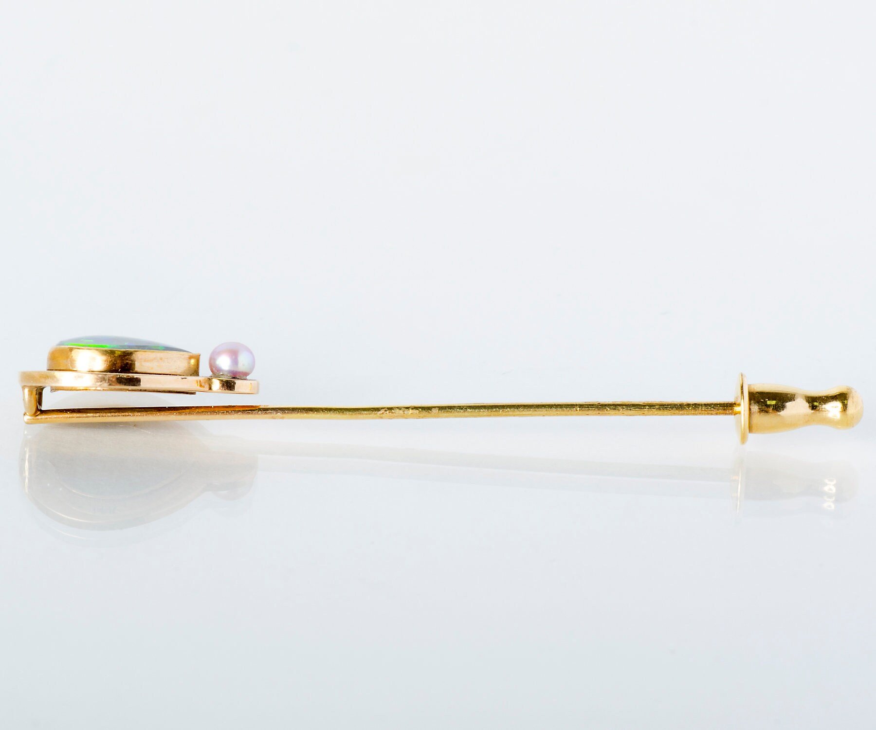 Antique Stickpin - Antique Art Deco 14k Yellow Gold Black Opal, Enamel & Pearl Stickpin Fine Teardrop Black Opal 2 1/2 - 3.00 ct Pearl Black Enamel 14k Yellow Gold Dimensions: 2 5/8" inches long