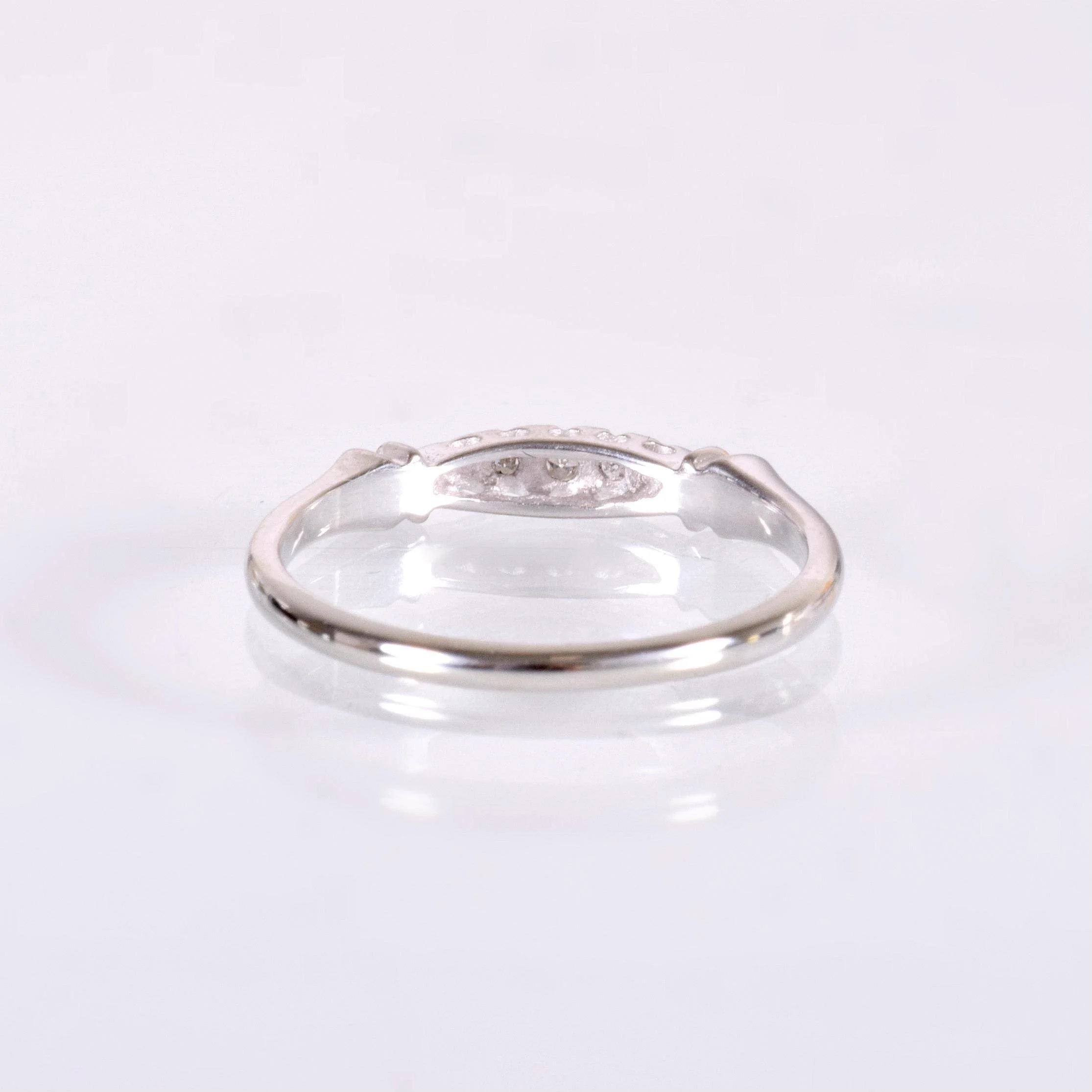 Antique Wedding Band - Antique 14k White Gold Diamond Wedding Band Circa 1920's-30's 14k White Gold 3 Single Cut Diamonds =.05ct Ring Size 5.25 (sizable) Ring measures approximately 2.7mm at center, back of band is 1.5mm wide.